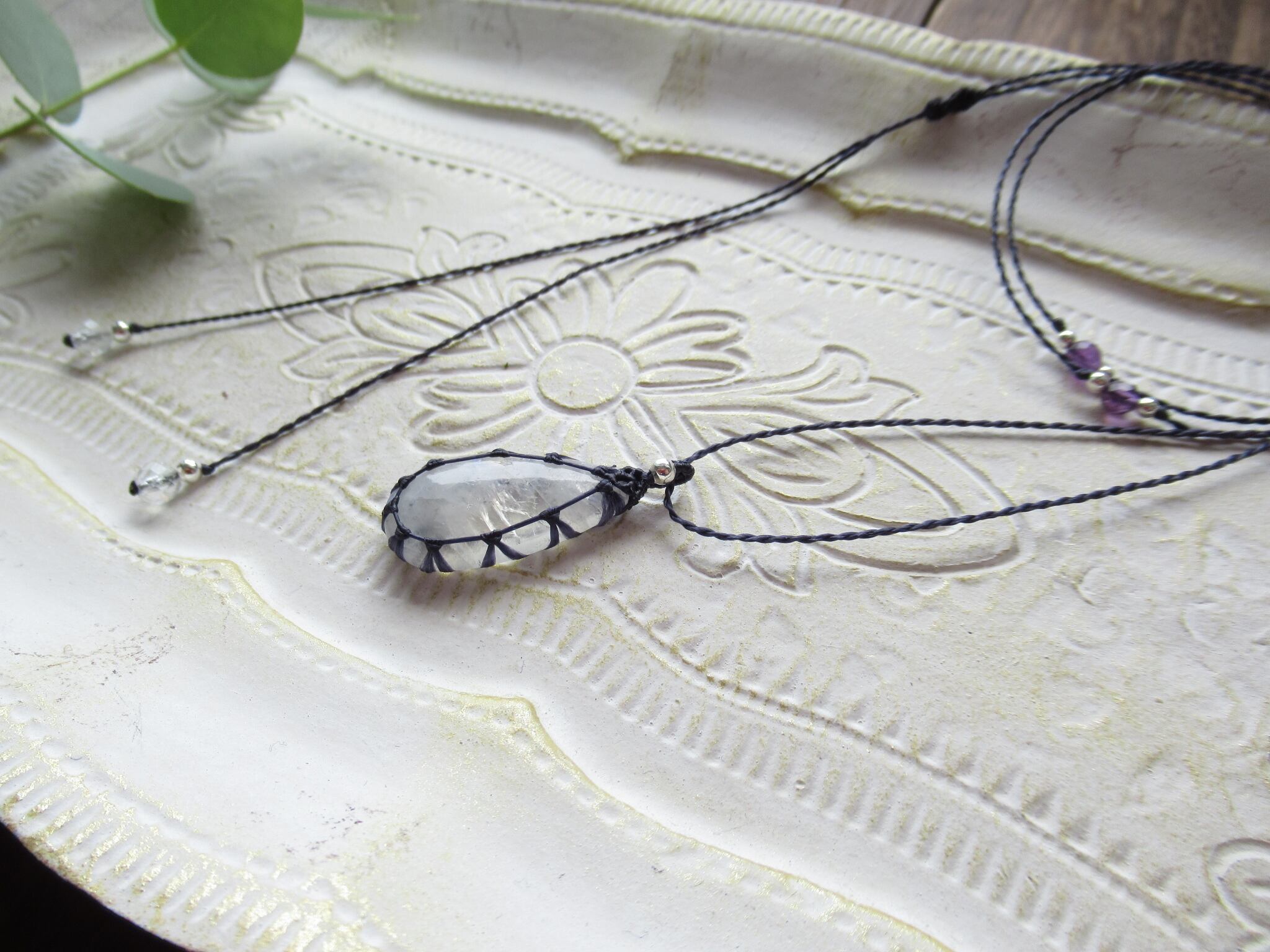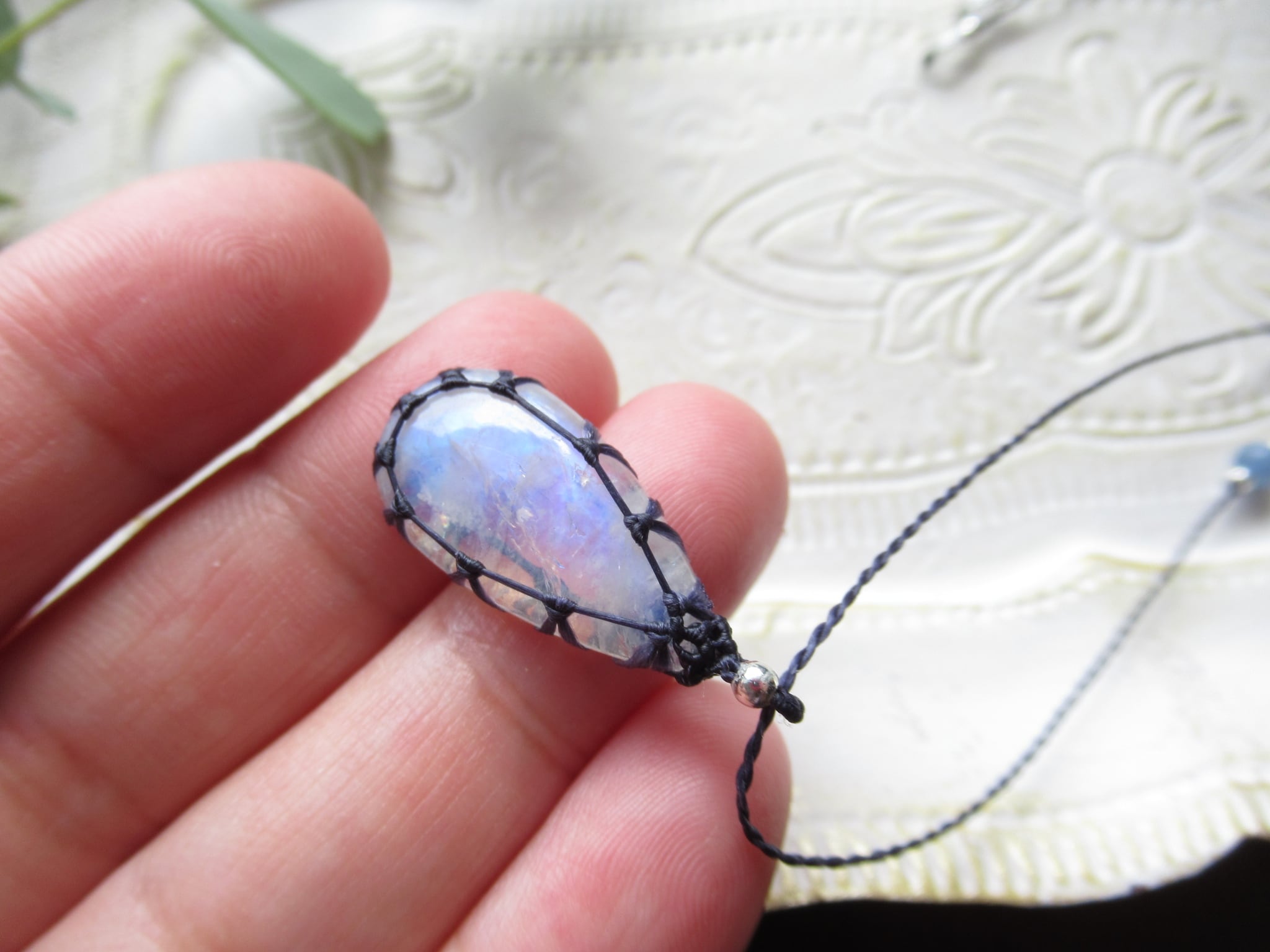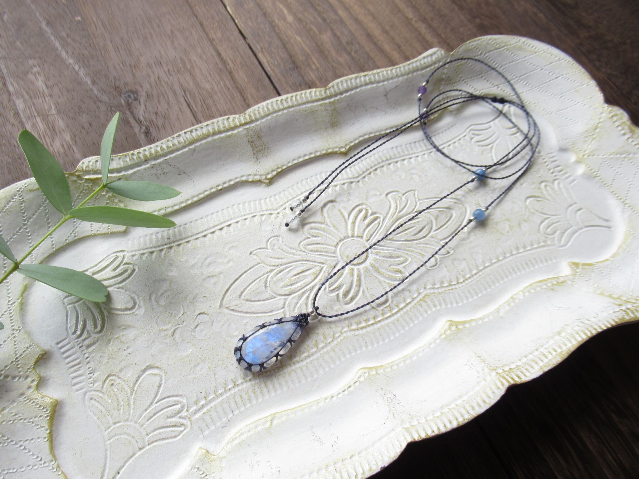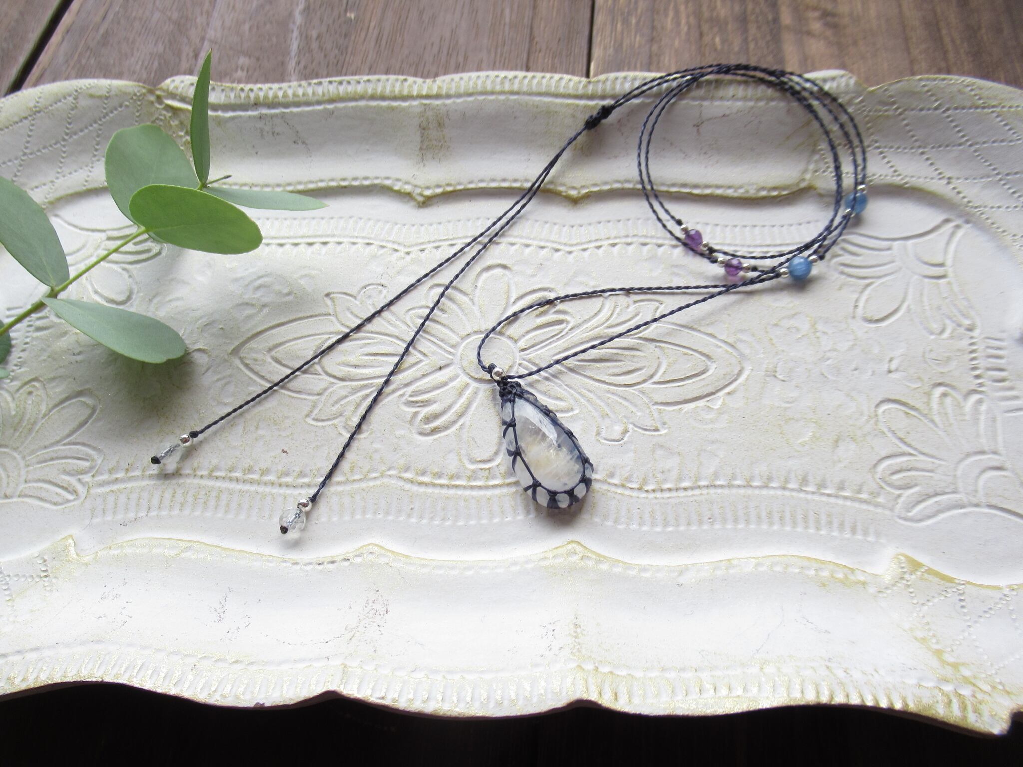 宵待月のしずく ブルームーンストーンのマクラメネックレス /0.25mm仕上げ