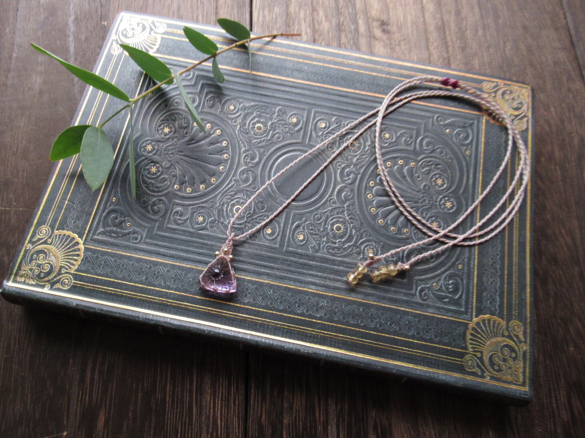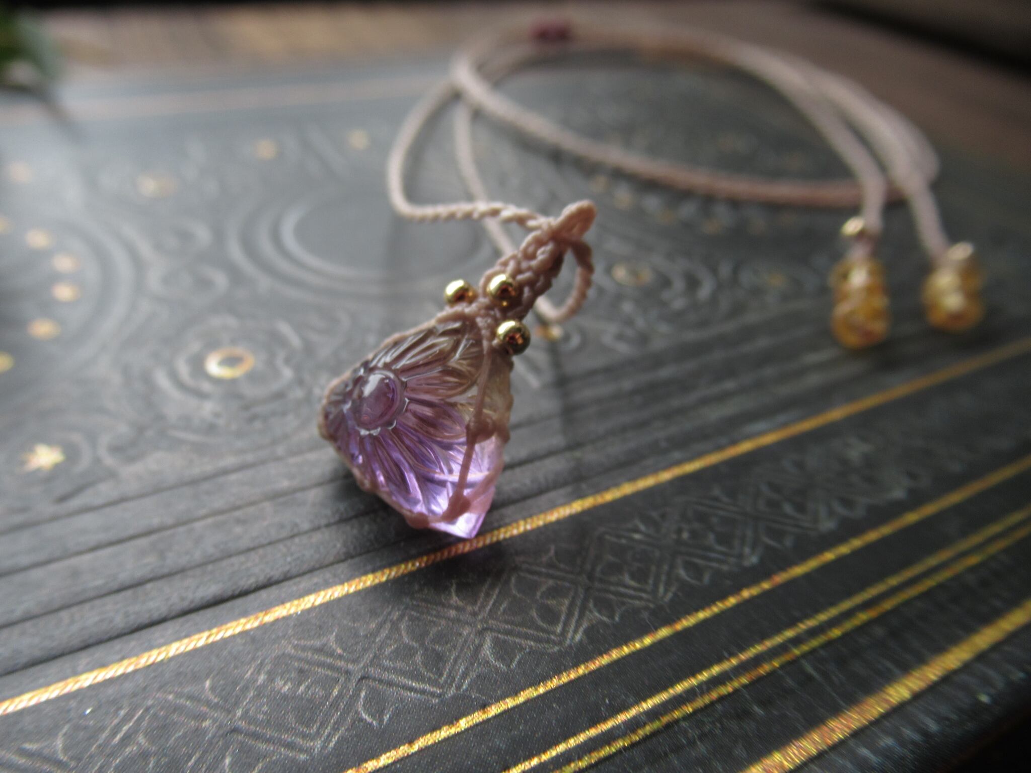 お花模様のさんかくアメトリンのマクラメネックレス /0.25mm仕上げ