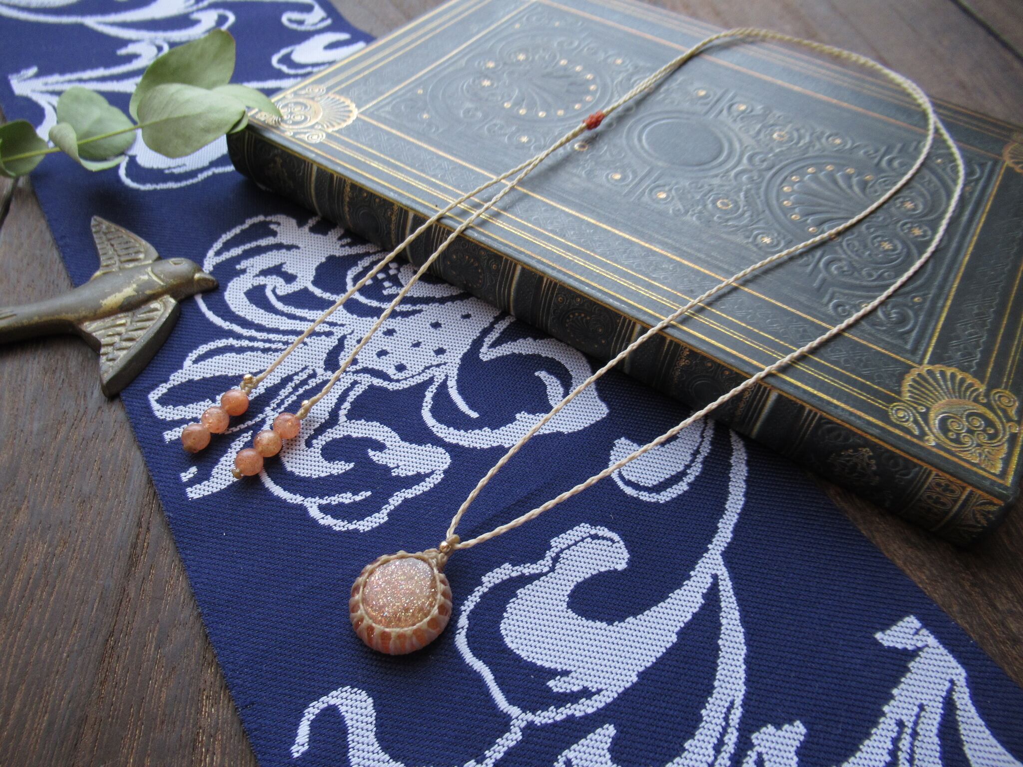 虹色太陽のまんまるサンストーンのマクラメペンダント /0.25mm仕上げ
