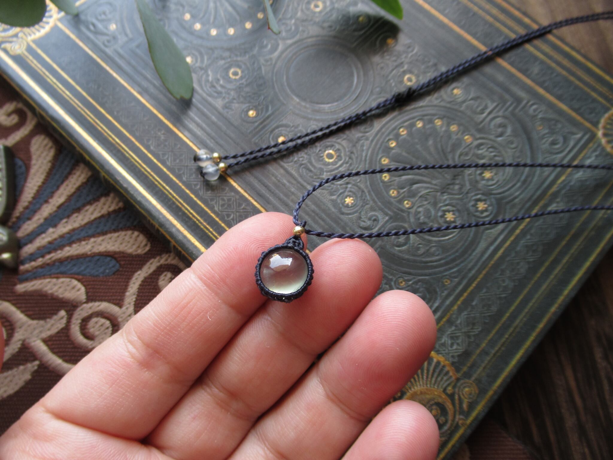 ちいさなぷるつやプレナイトのマクラメペンダント /0.25mm仕上げ