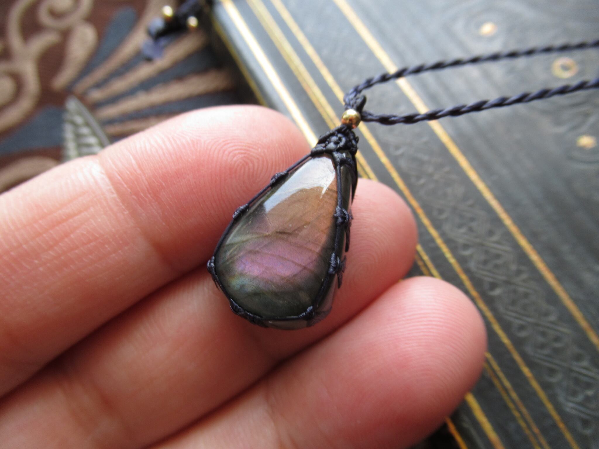 ☆オレンジパープルラブラドライトのマクラメペンダント / 0.25mm仕上げ