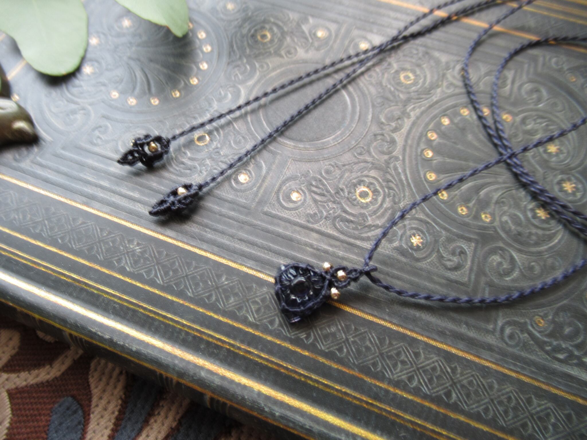 ちいさなお花模様のアイオライトのマクラメペンダント /0.25mm仕上げ