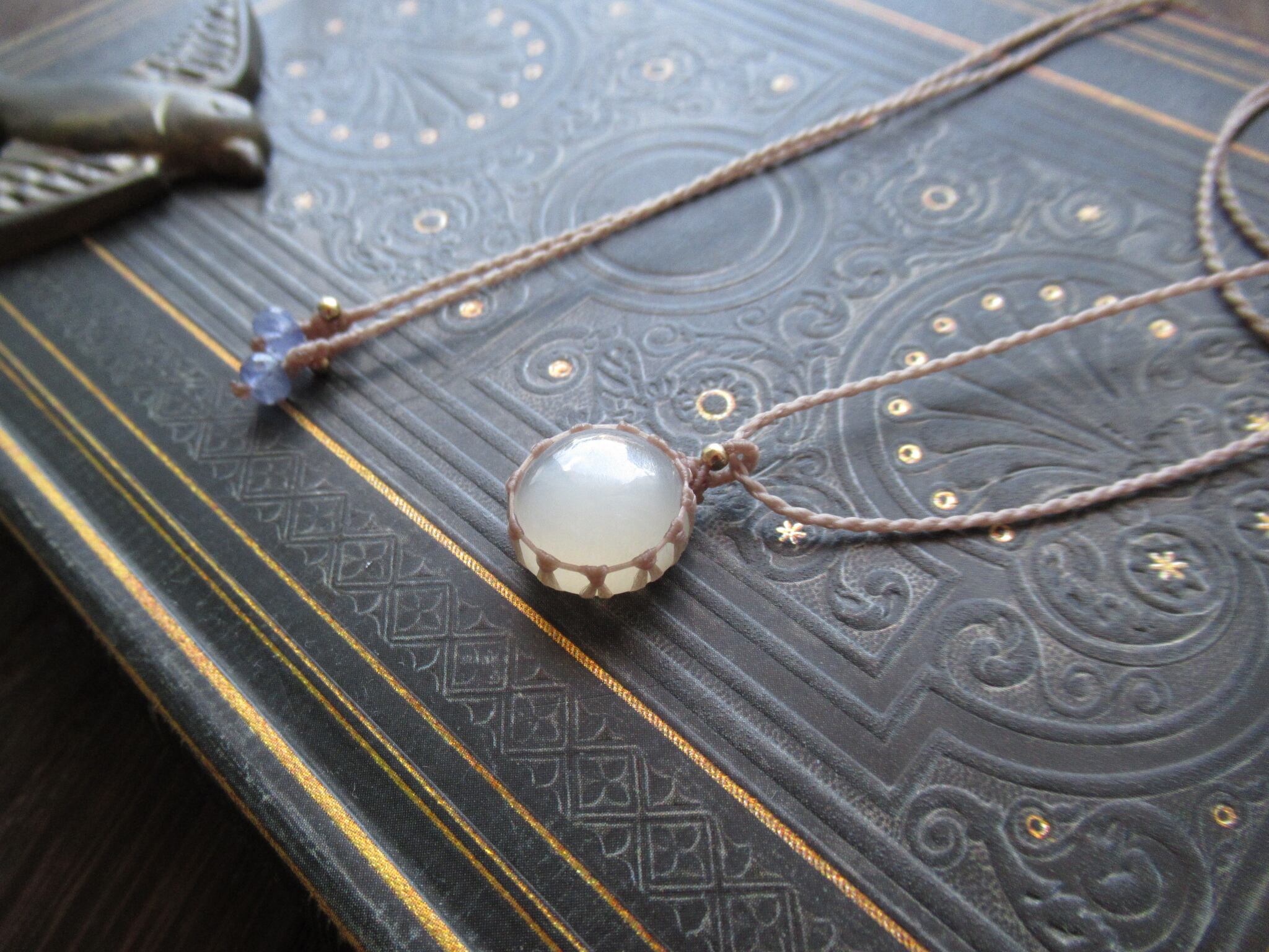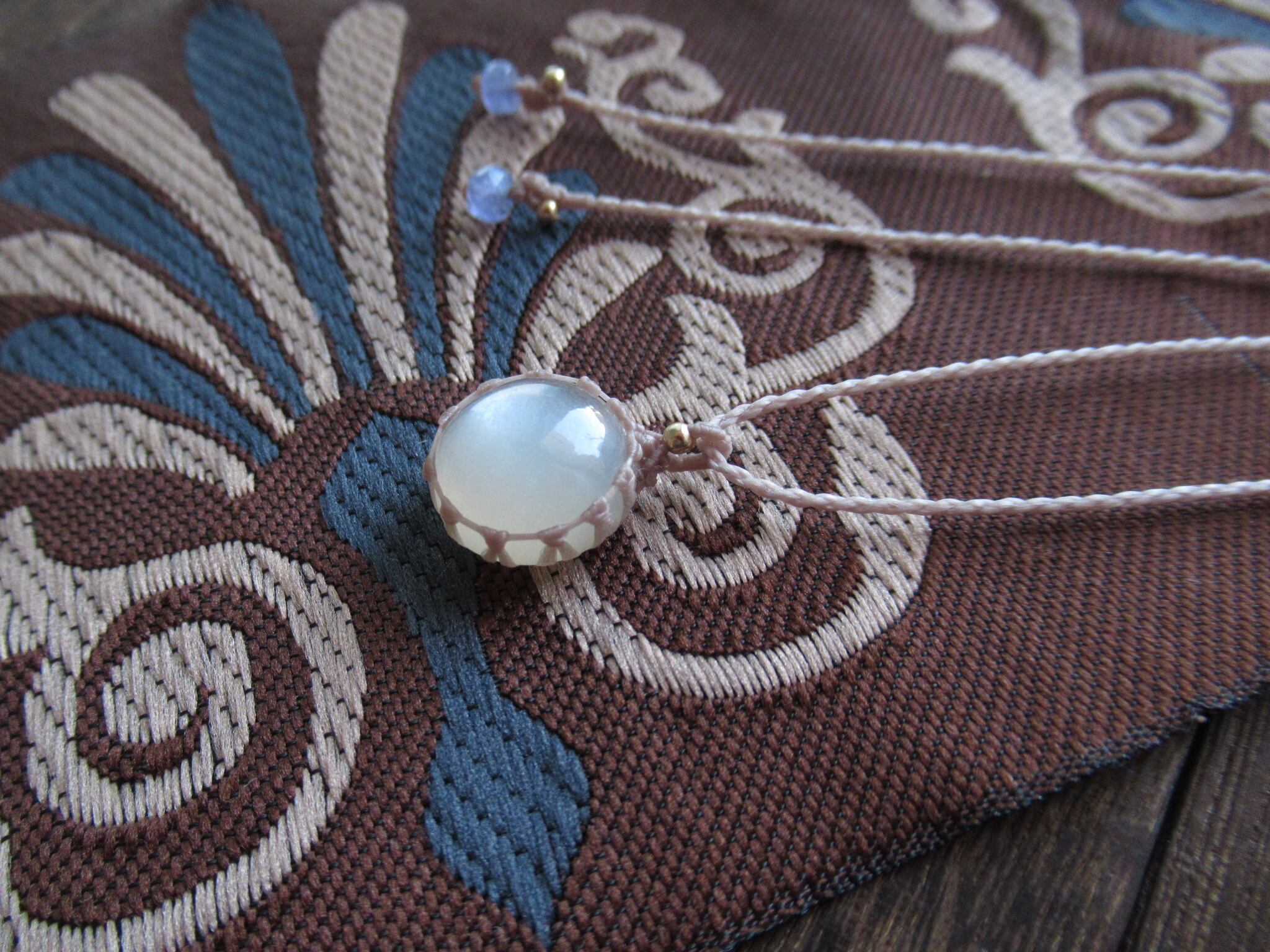 まんまる満月のグレーオレンジムーンストーンのマクラメペンダント /0.25mm仕上げ