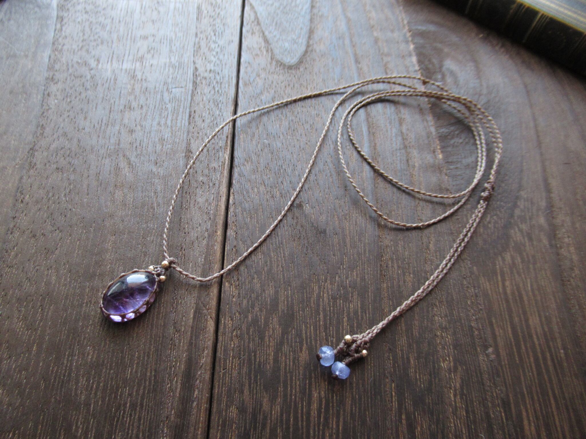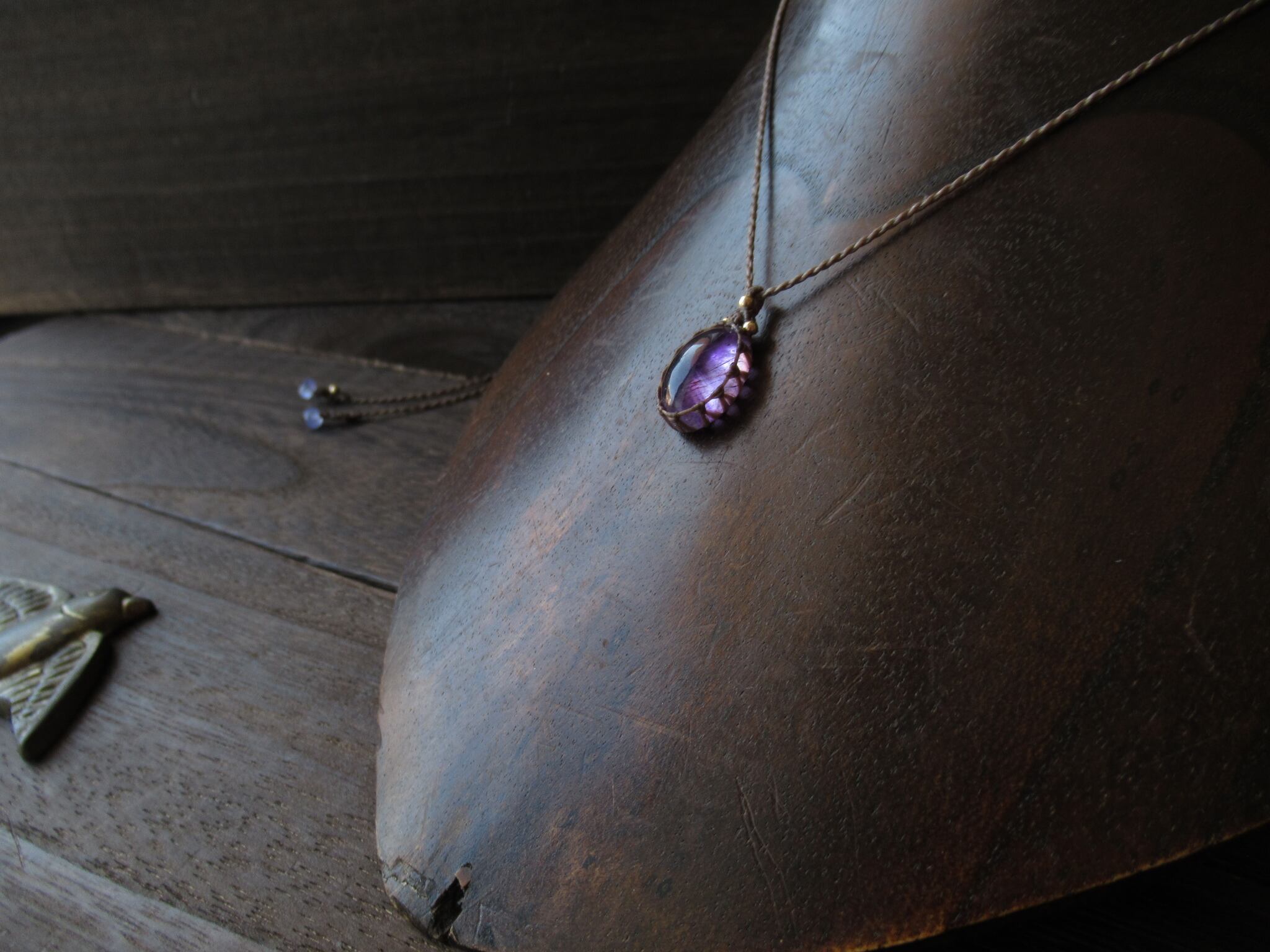 ゲーサイトインアメジストのマクラメペンダント /0.25mm仕上げ
