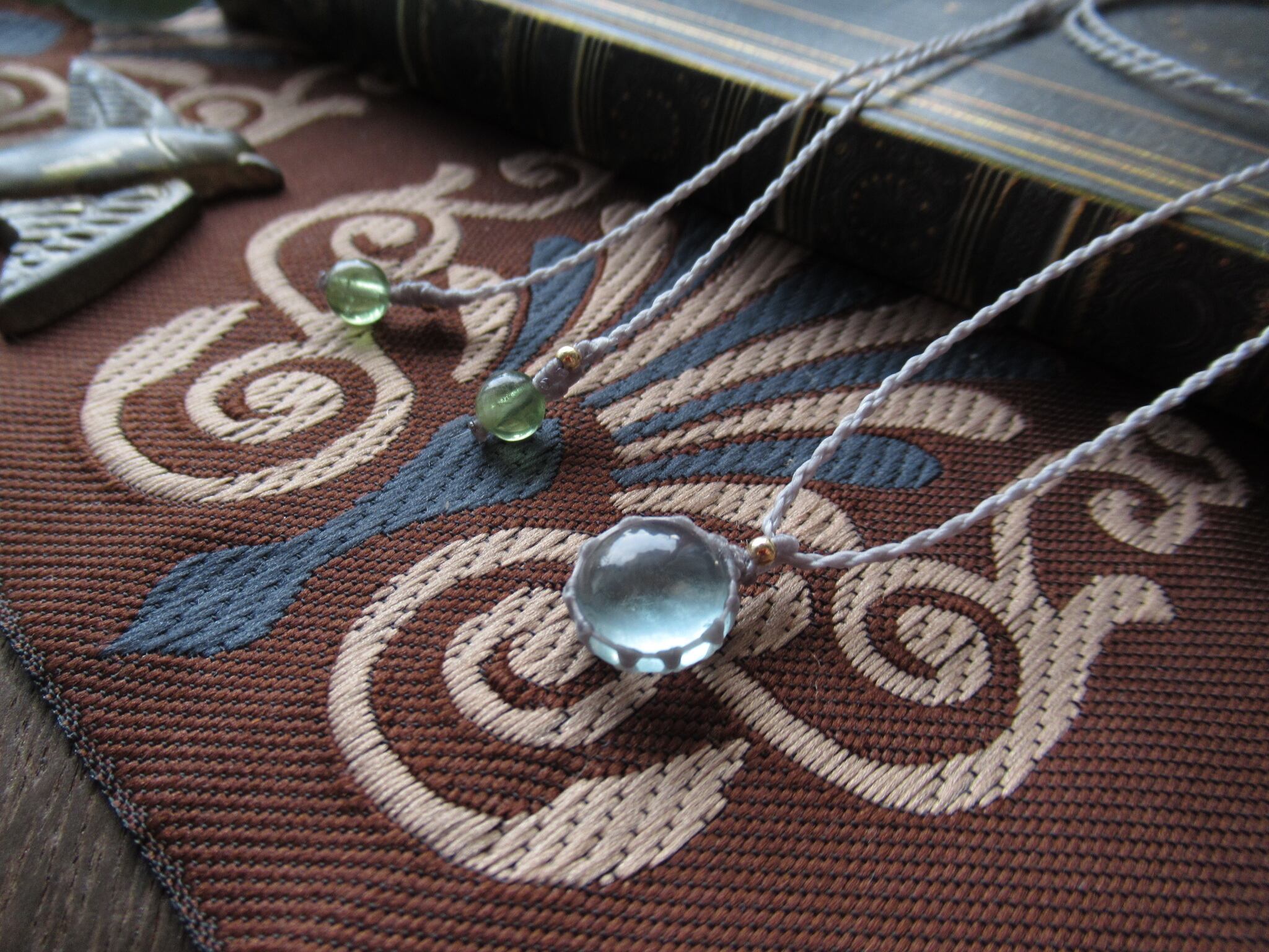 ちいさなころん、としたまあるい形状のグリーンブルーを日常でたくさん身に着けていただけるように、シンプルなペンダントにお仕立ていたしました。
