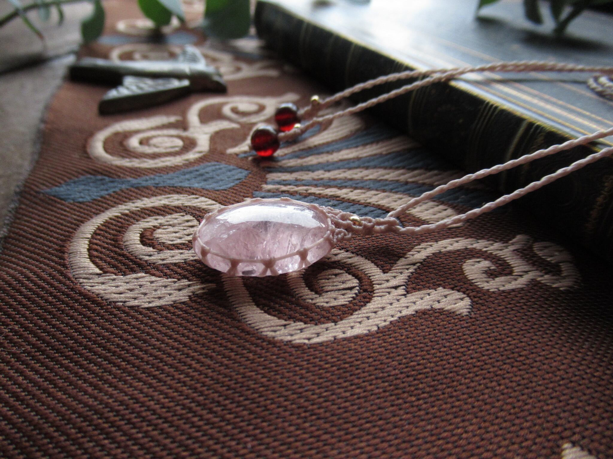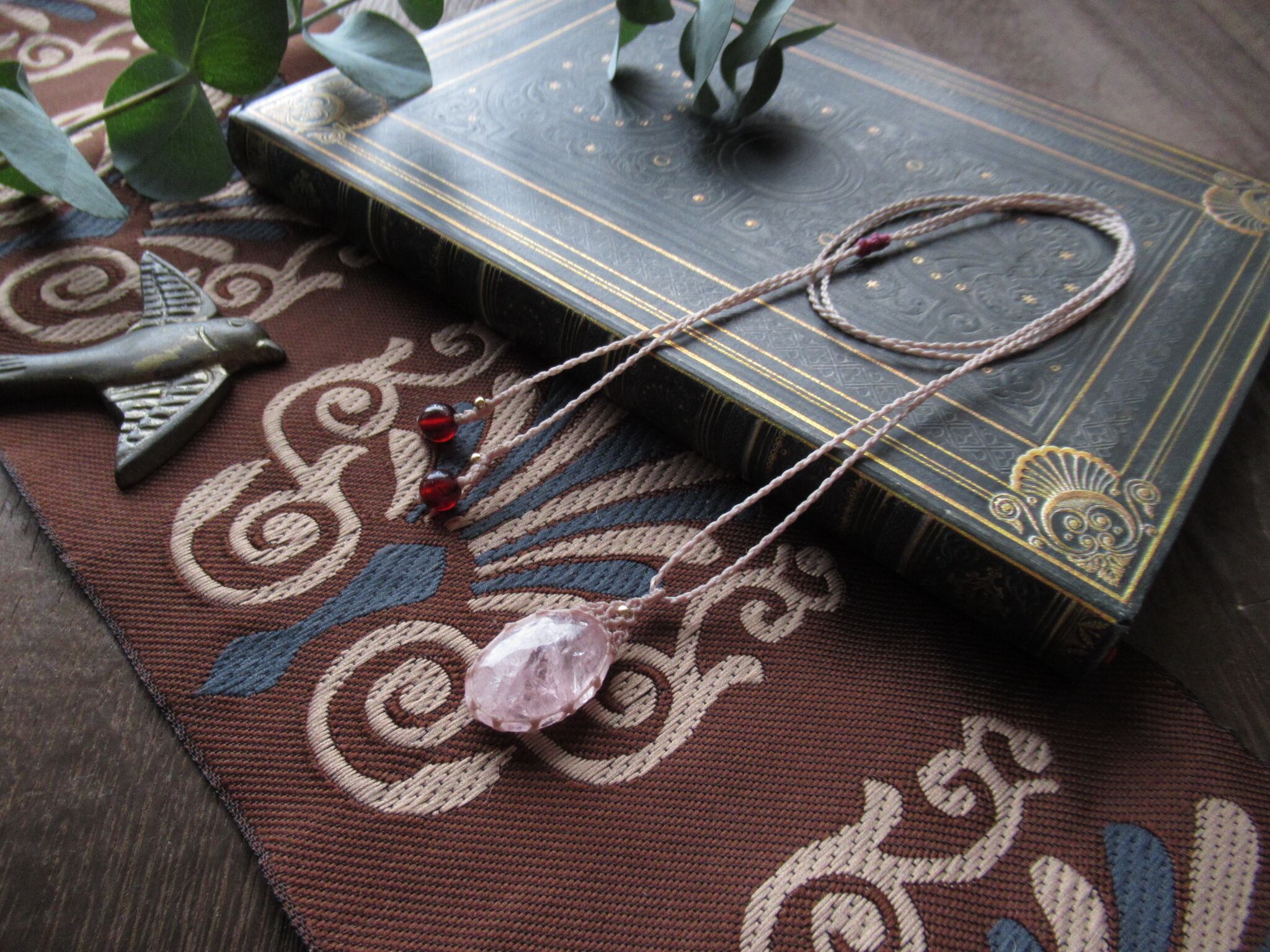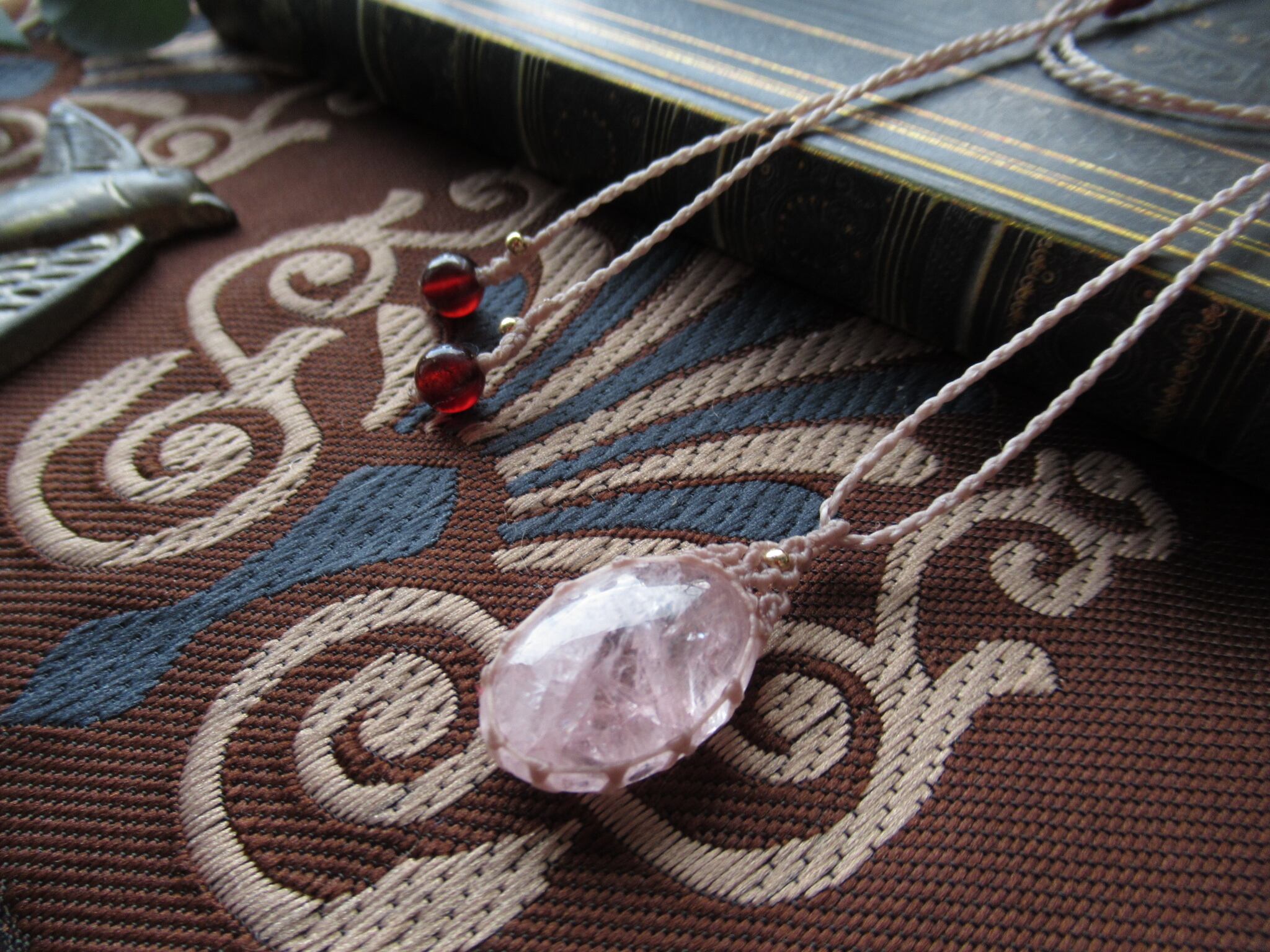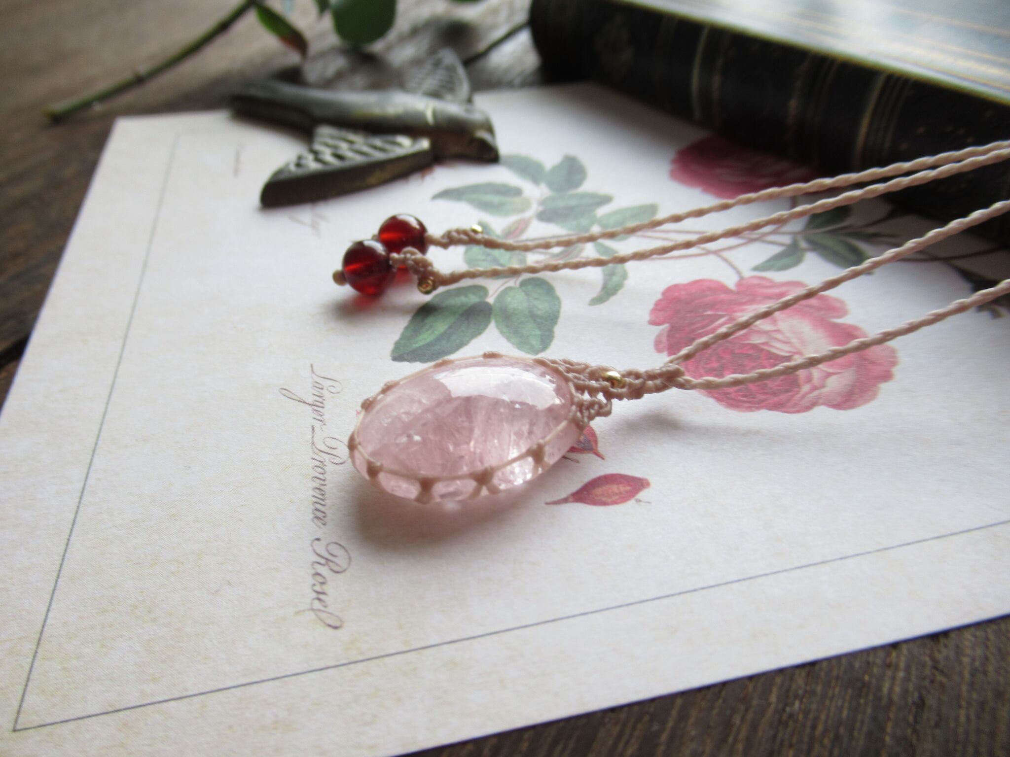 大粒ブラジル産宝石質モルガナイトのマクラメペンダント /0.25mm仕上げ