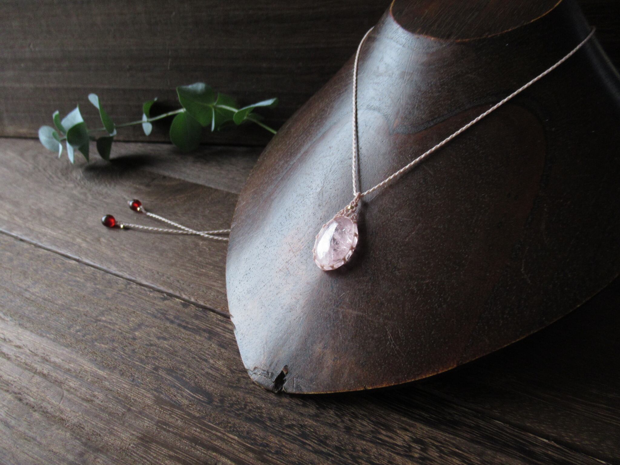 大粒で明るい濃い目の桜色の宝石質モルガナイトを夏から秋にかけてカジュアルにお使いいただける、シンプルなペンダントにお仕立ていたしました。