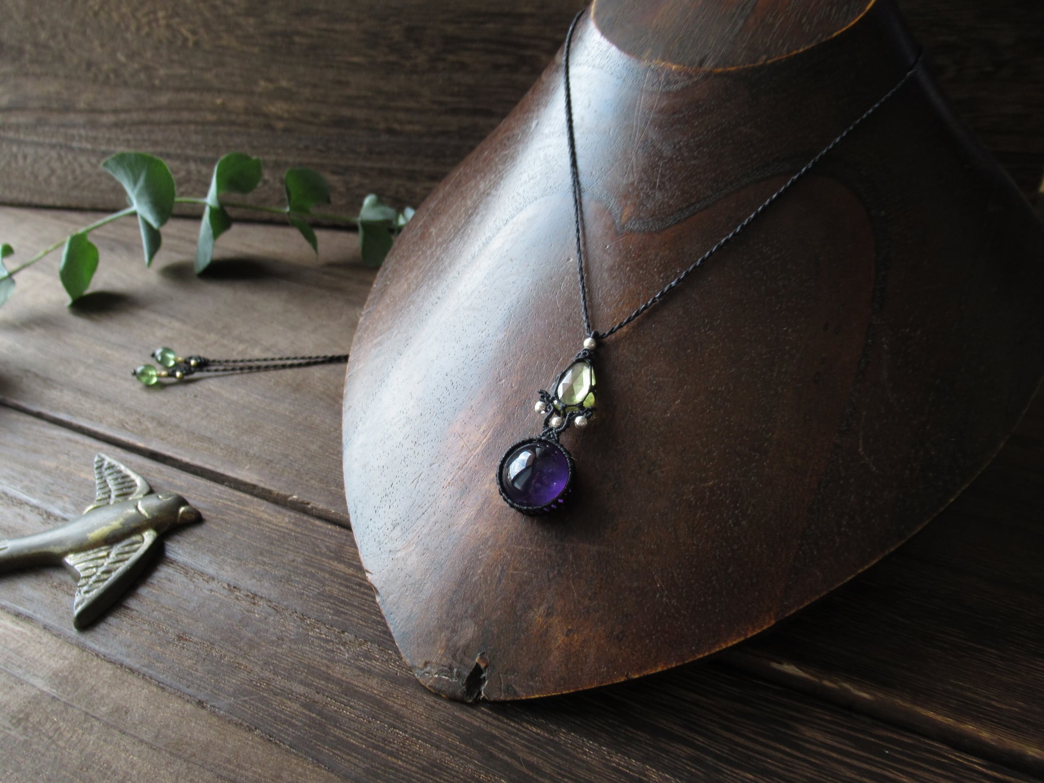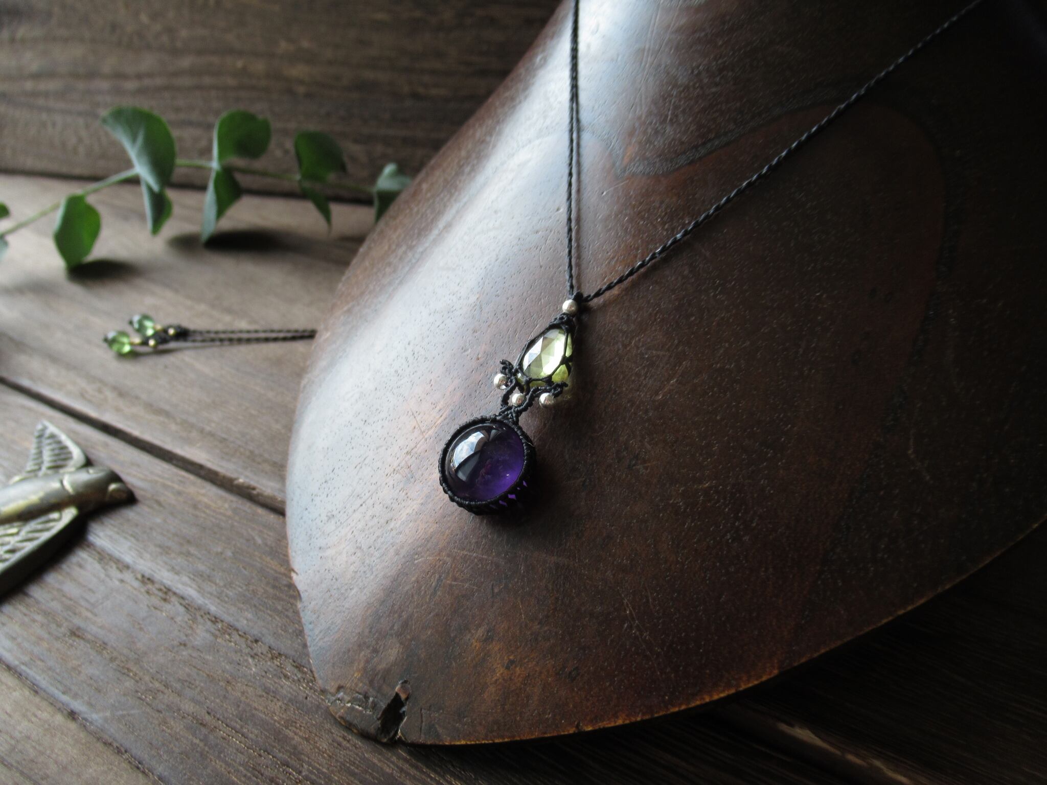 スフェーン×ザンビア産アメジストのマクラメペンダント /0.25mm仕上げ
