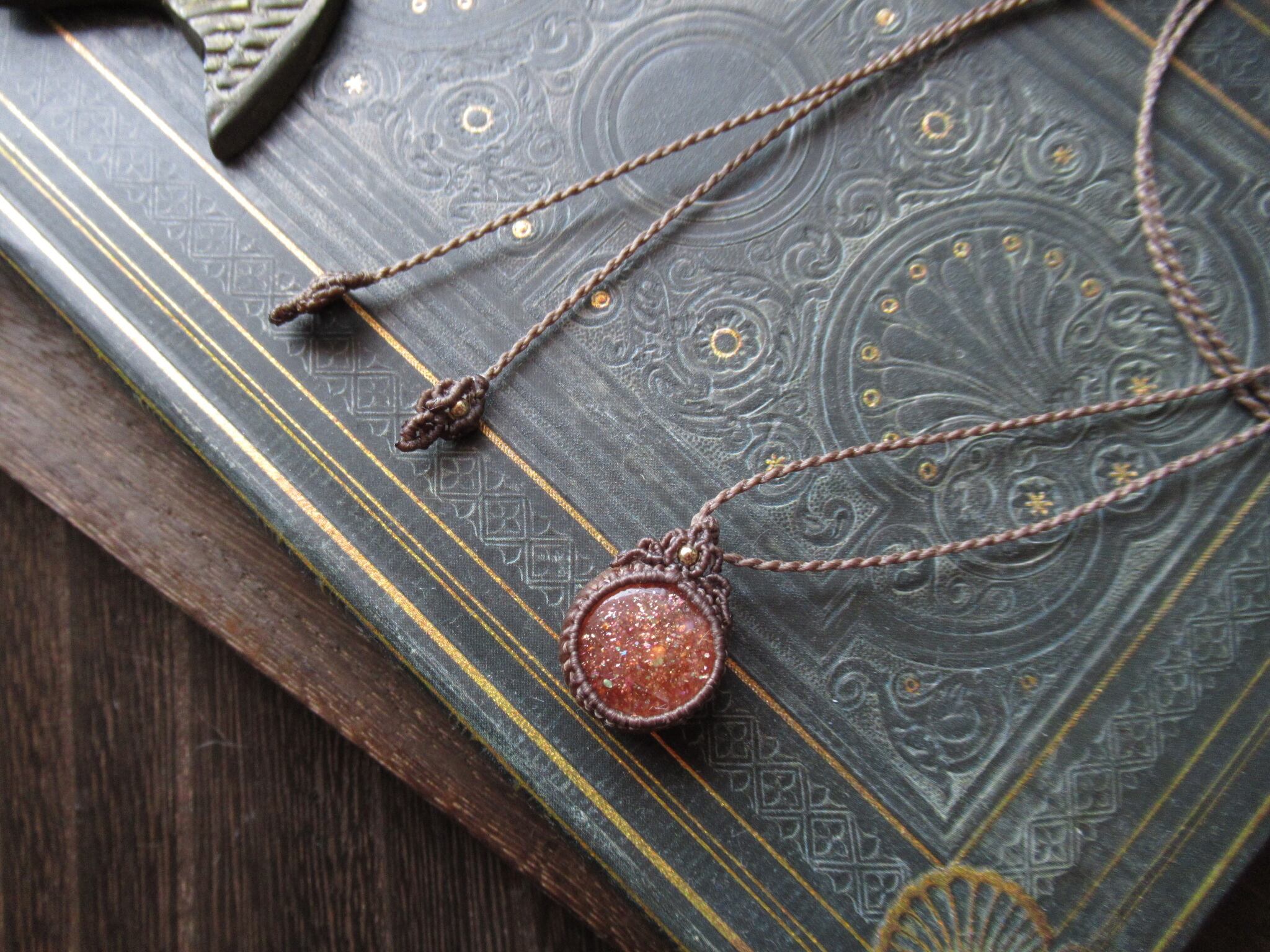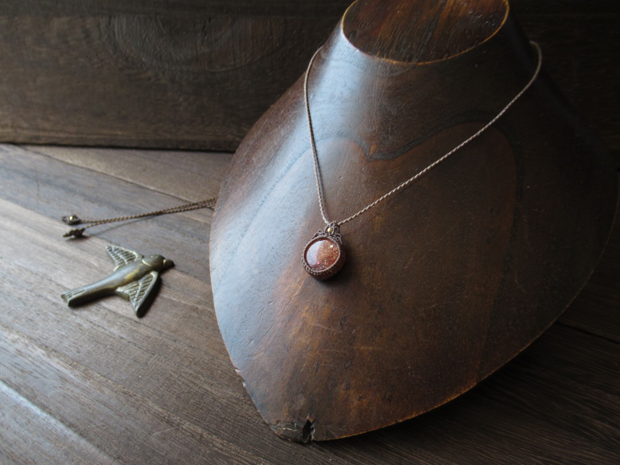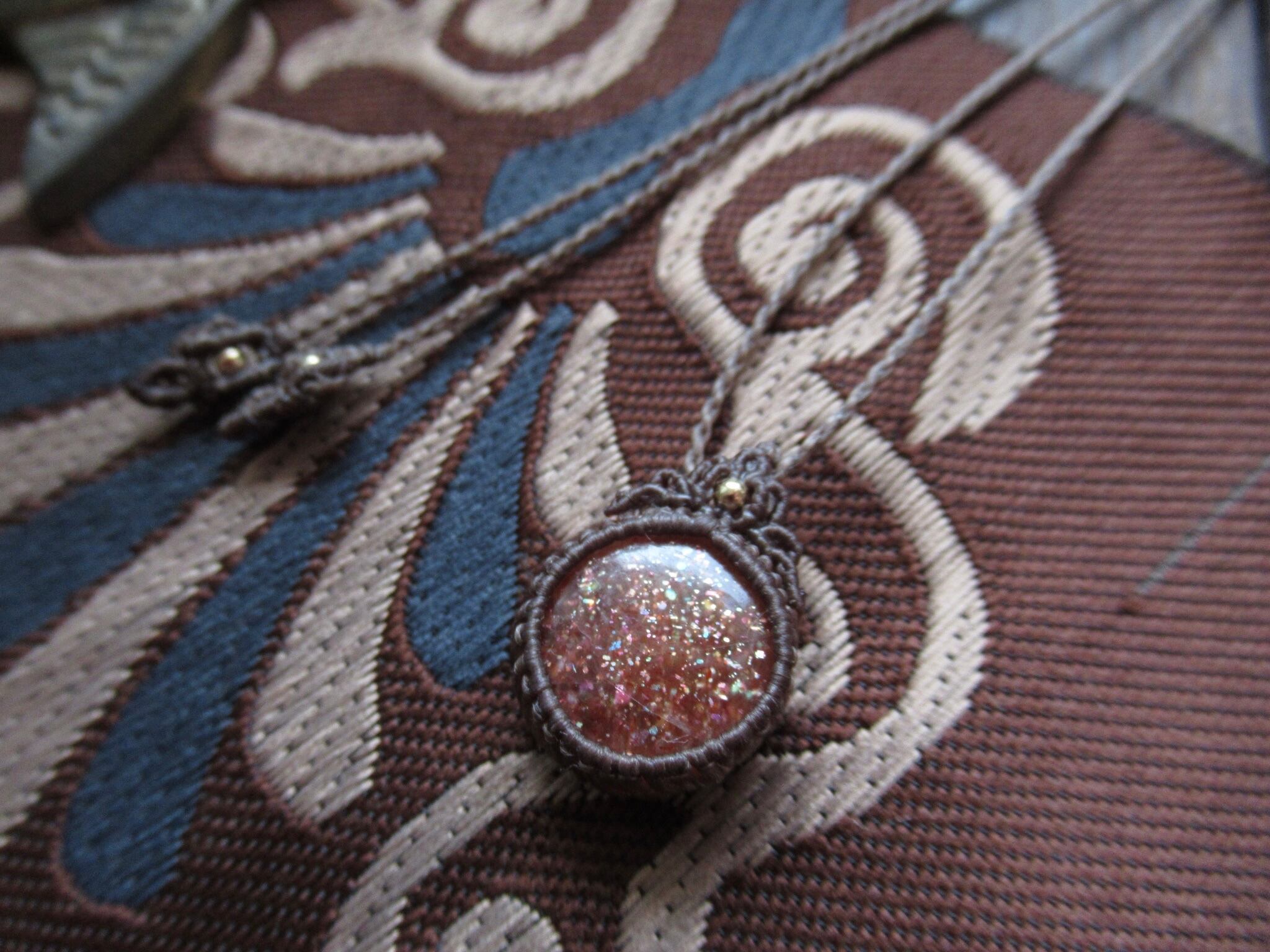 虹色花火 サンストーンのマクラメペンダント /0.25mm仕上げ
