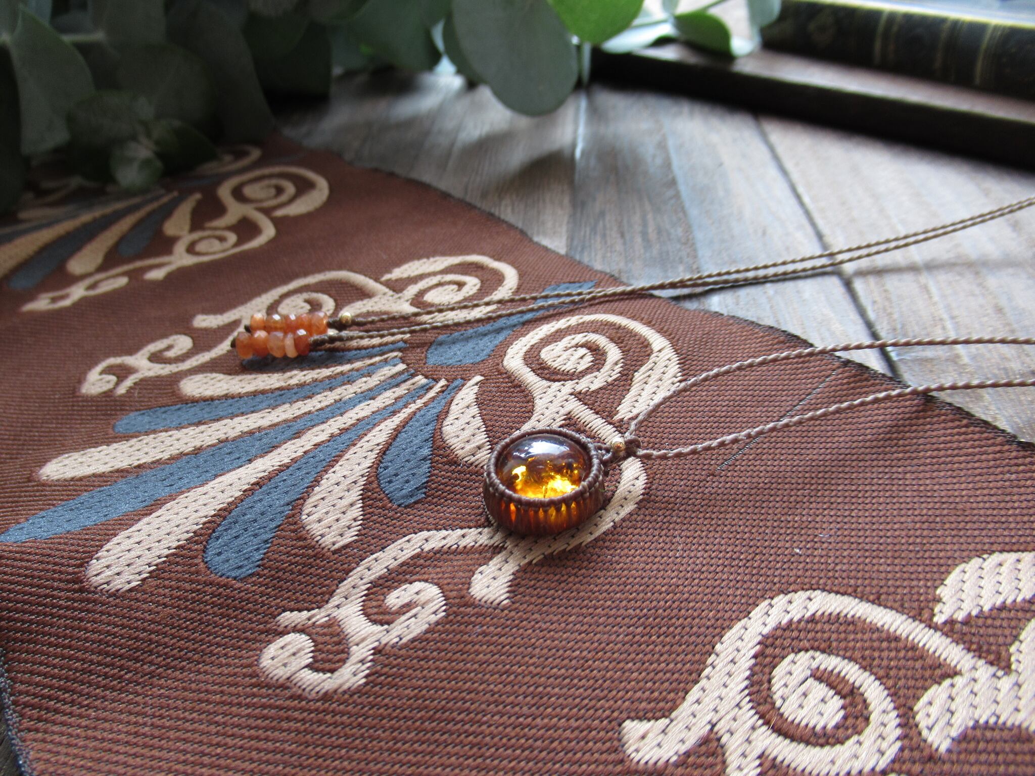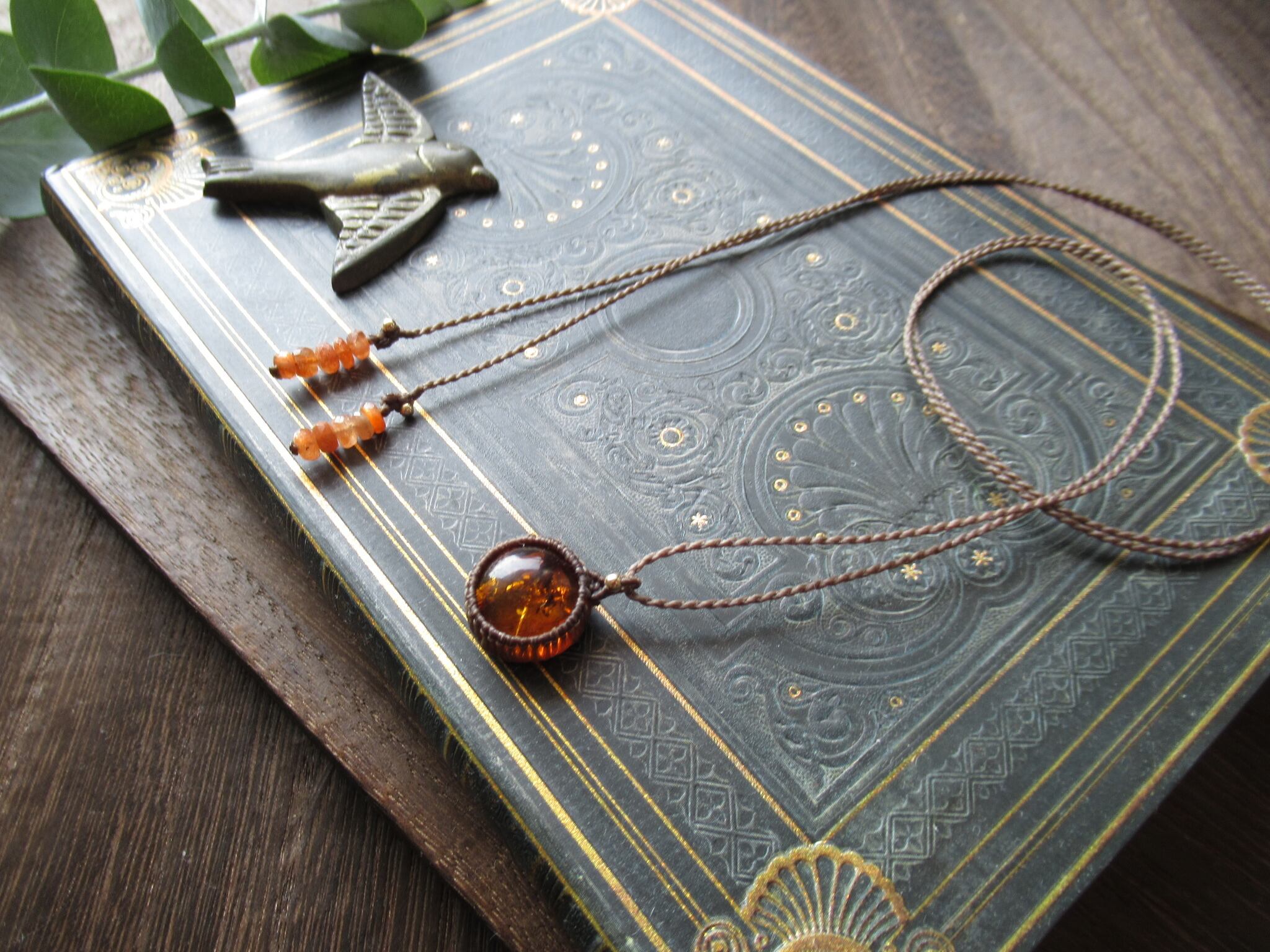 まんまる琥珀のマクラメペンダント /0.25mm仕上げ