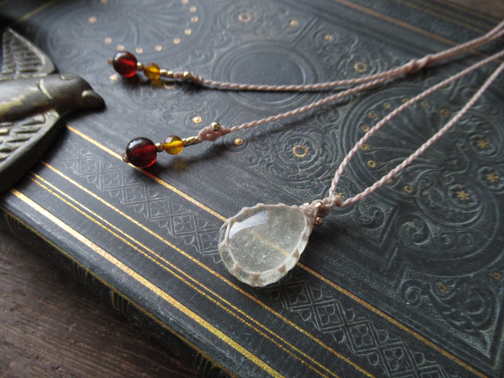 砂漠に落ちた月のしずく リビアングラスのマクラメペンダント /0.25mm仕上げ