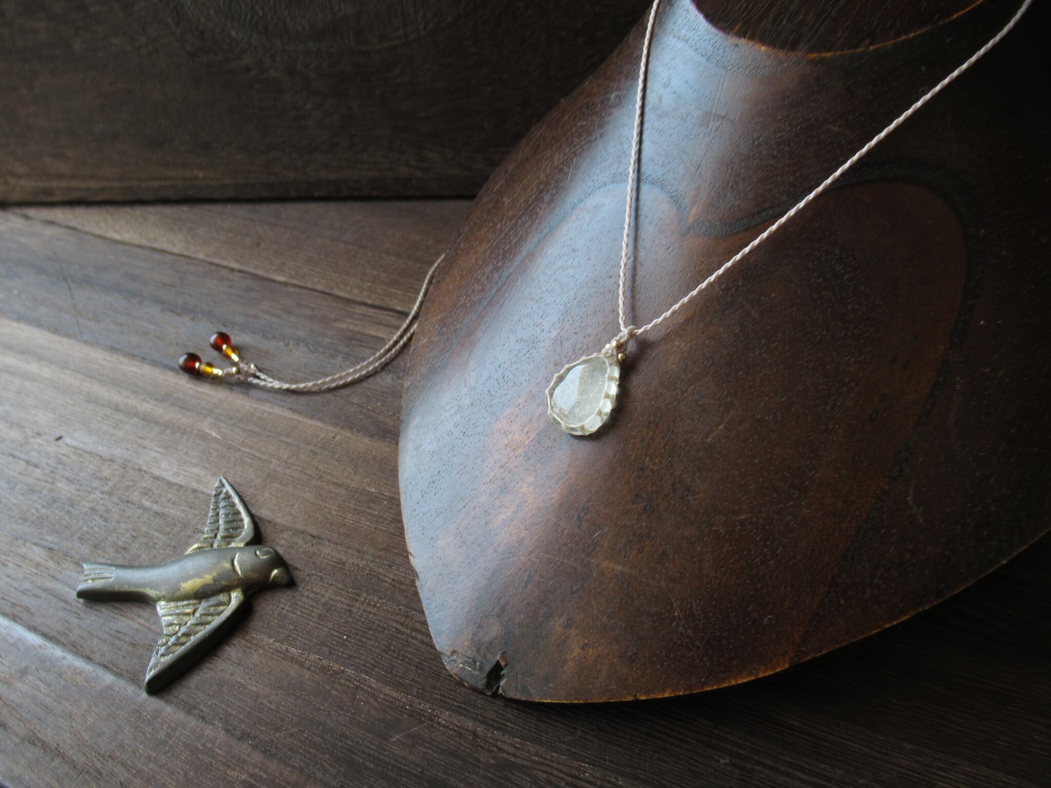 硬質なガラスのような触感はありますが、予想以上に不思議と温かみがあり、手で触れるとひんやり冷たいのにどこかあたたかいような面白い素材です。同じ形状や大きさの鉱物と比較しても不思議と軽さを感じるところも(ペンダントによる肩こりが心配な方に特に)おすすめの理由です。
