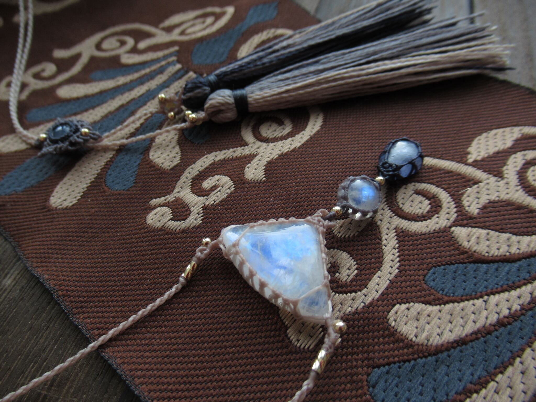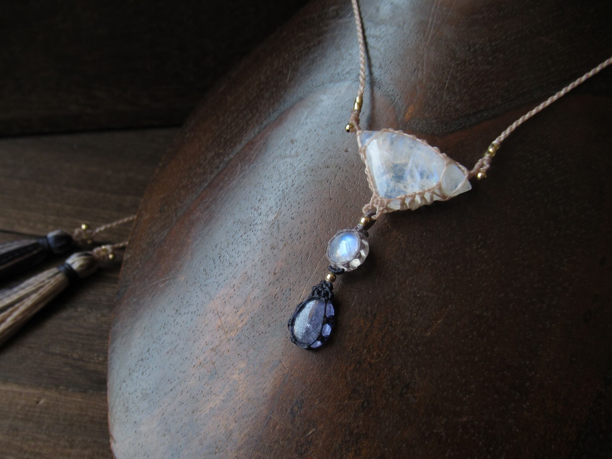 月讀尊 夜の宴のひとふり /レインボームーンストーン×タンザナイト×ムーンストーンの神護(かみもり)の首飾り /0.25mm仕上げ