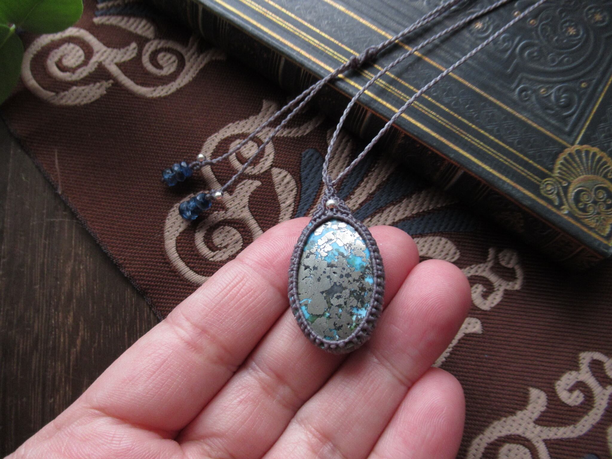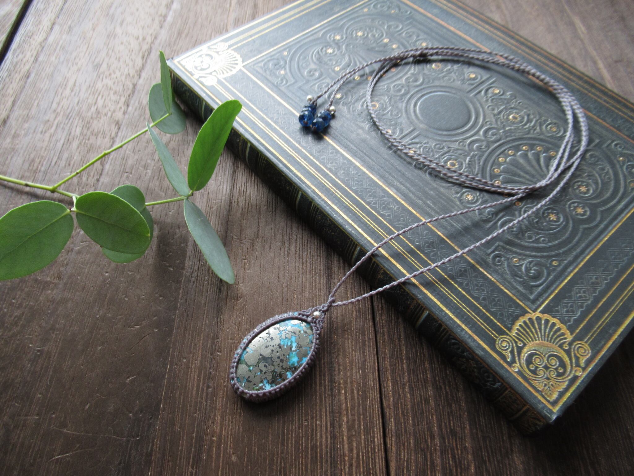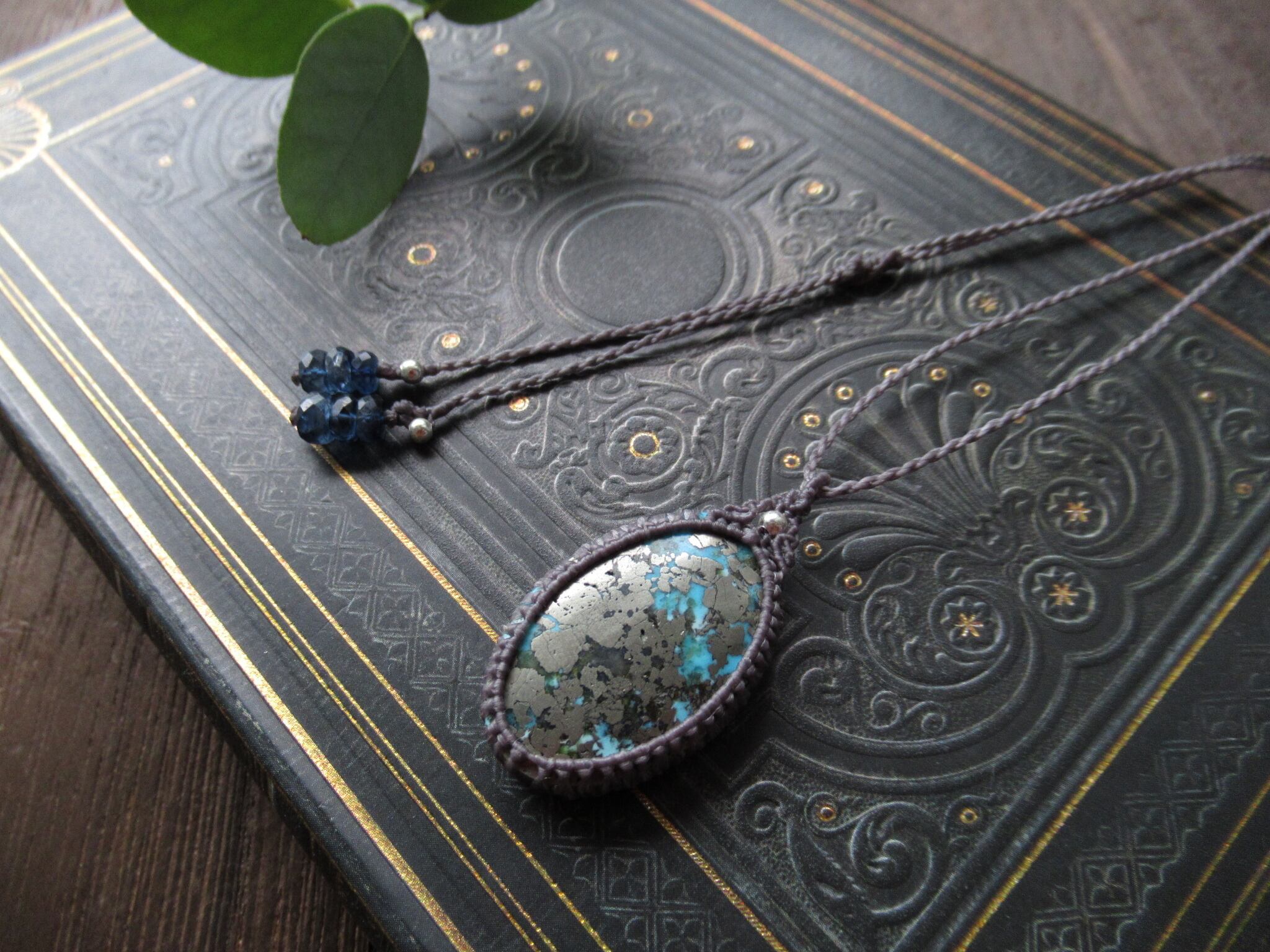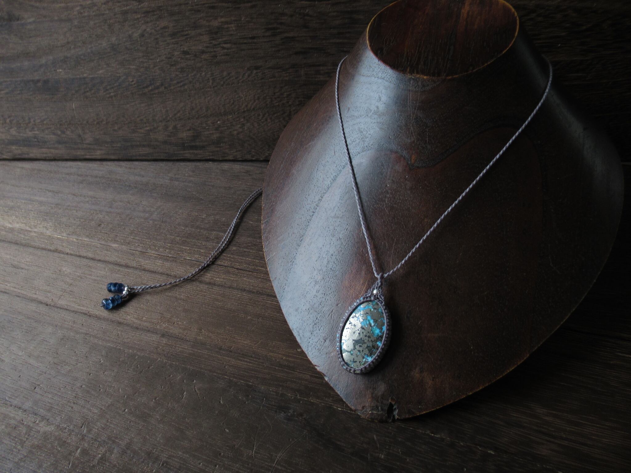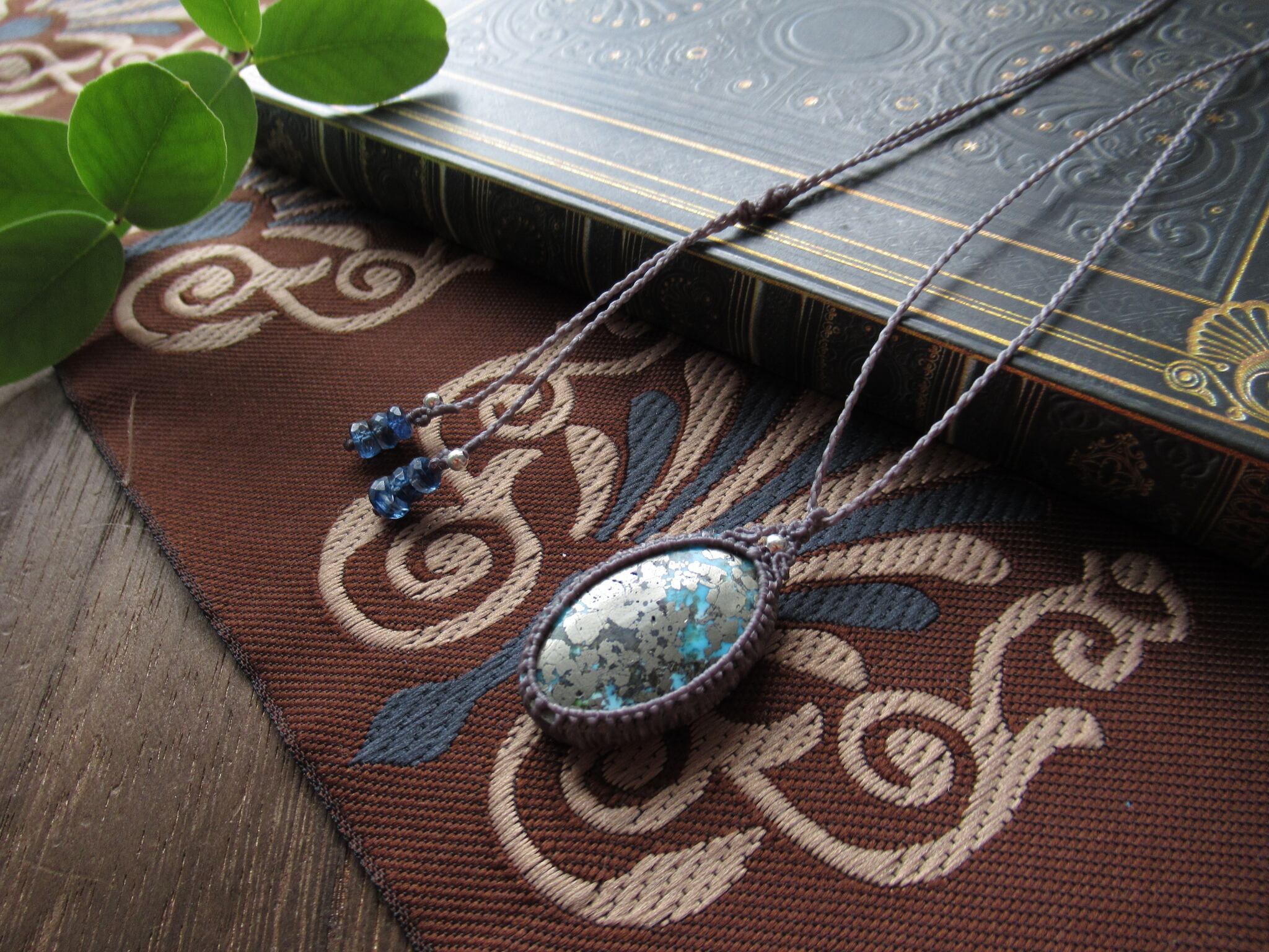 大粒ペルシャンターコイズのマクラメペンダント(パイライトぎっしりタイプ) / 0.25mm仕上げ