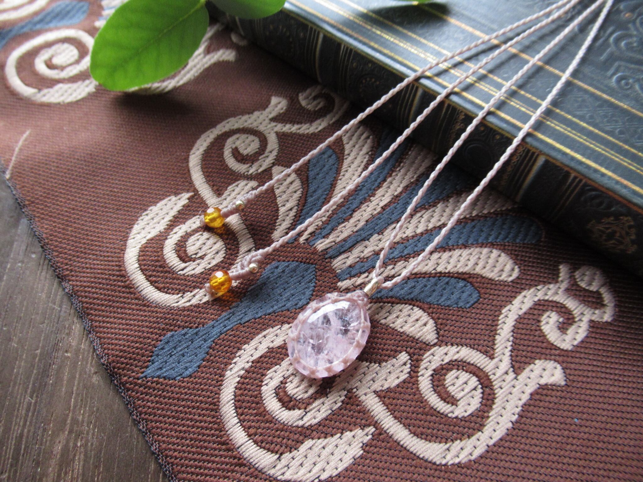 ふんわり桜色の宝石質モルガナイトを夏から秋にかけてカジュアルにお使いいただける、シンプルなペンダントにお仕立ていたしました。