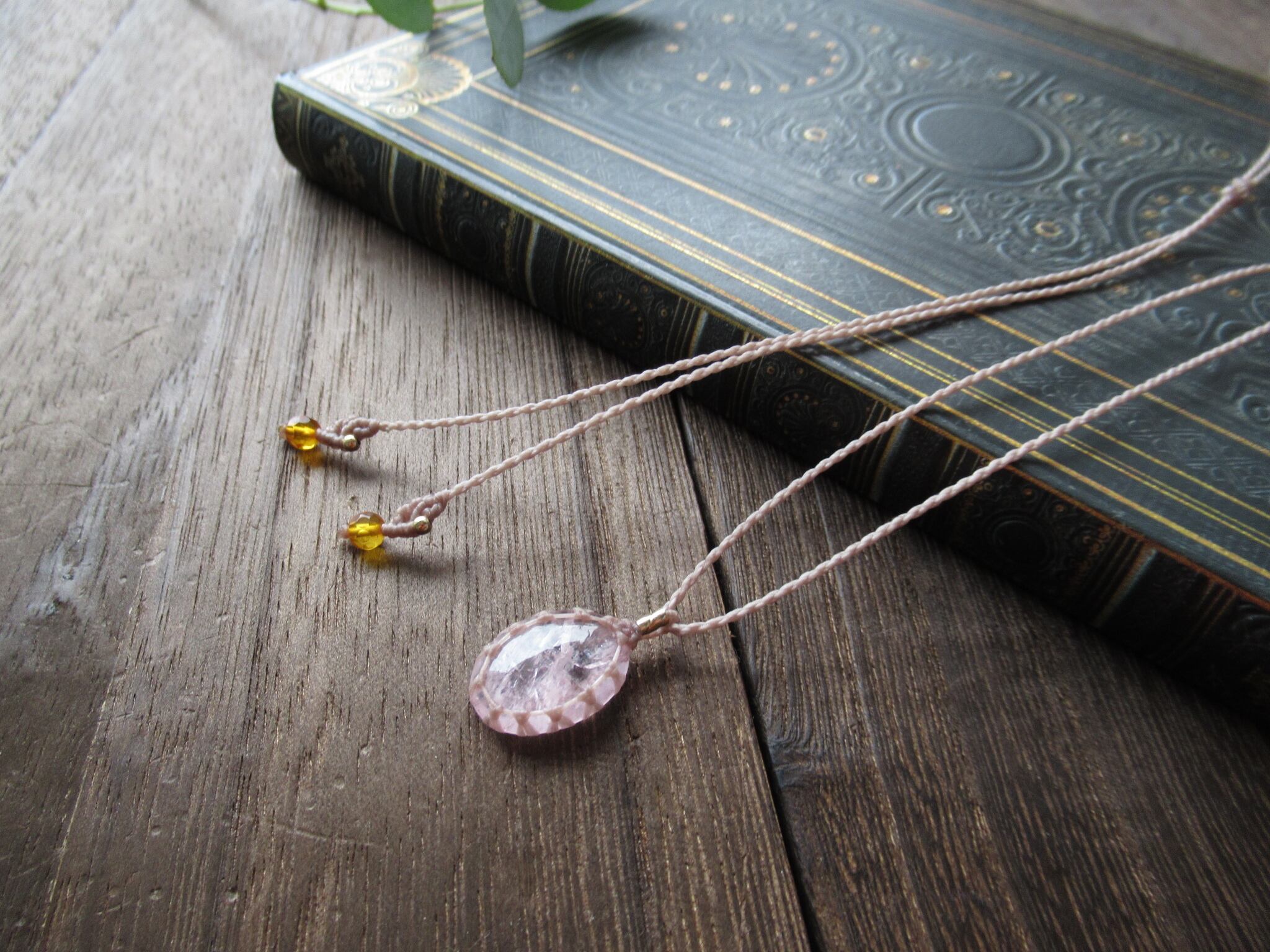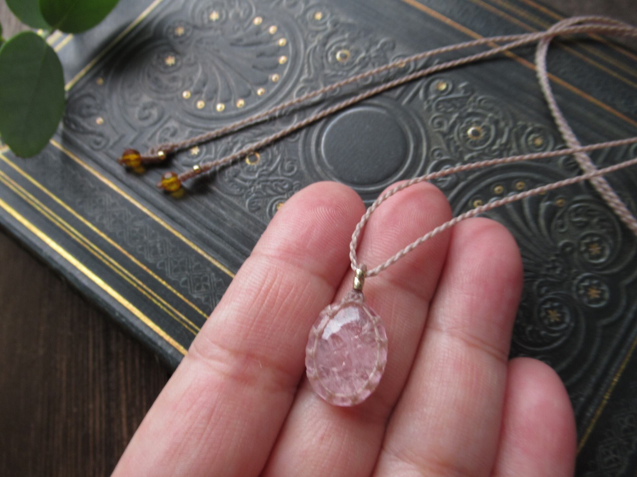 ブラジル産宝石質モルガナイトのマクラメペンダント /0.25mm仕上げ