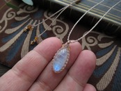 美しいシラーを煌めかせるレインボームーンストーンを、秋風を感じるような明るく落ち着いた色合いのペンダントにお仕立ていたしました。