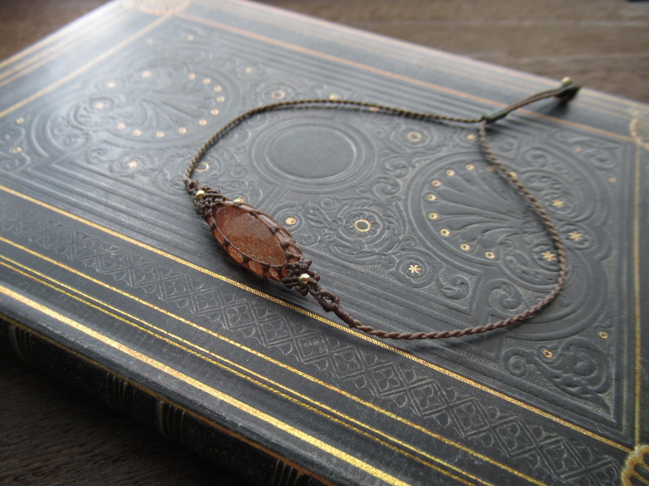 陸風松葉のサンストーンのマクラメブレスレット /0.25mm仕上げ