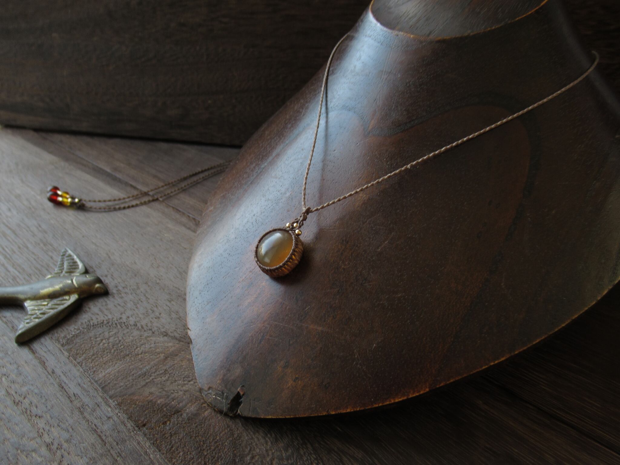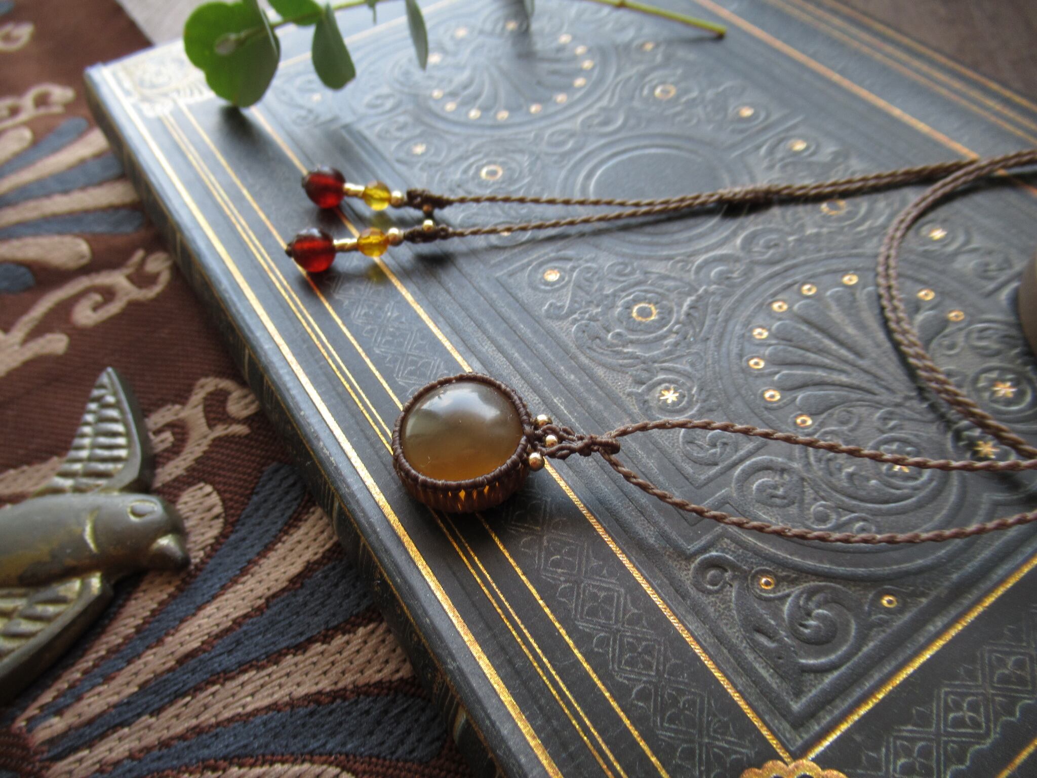 琥珀満月 ブルーアンバーのマクラメペンダント /0.25mm仕上げ