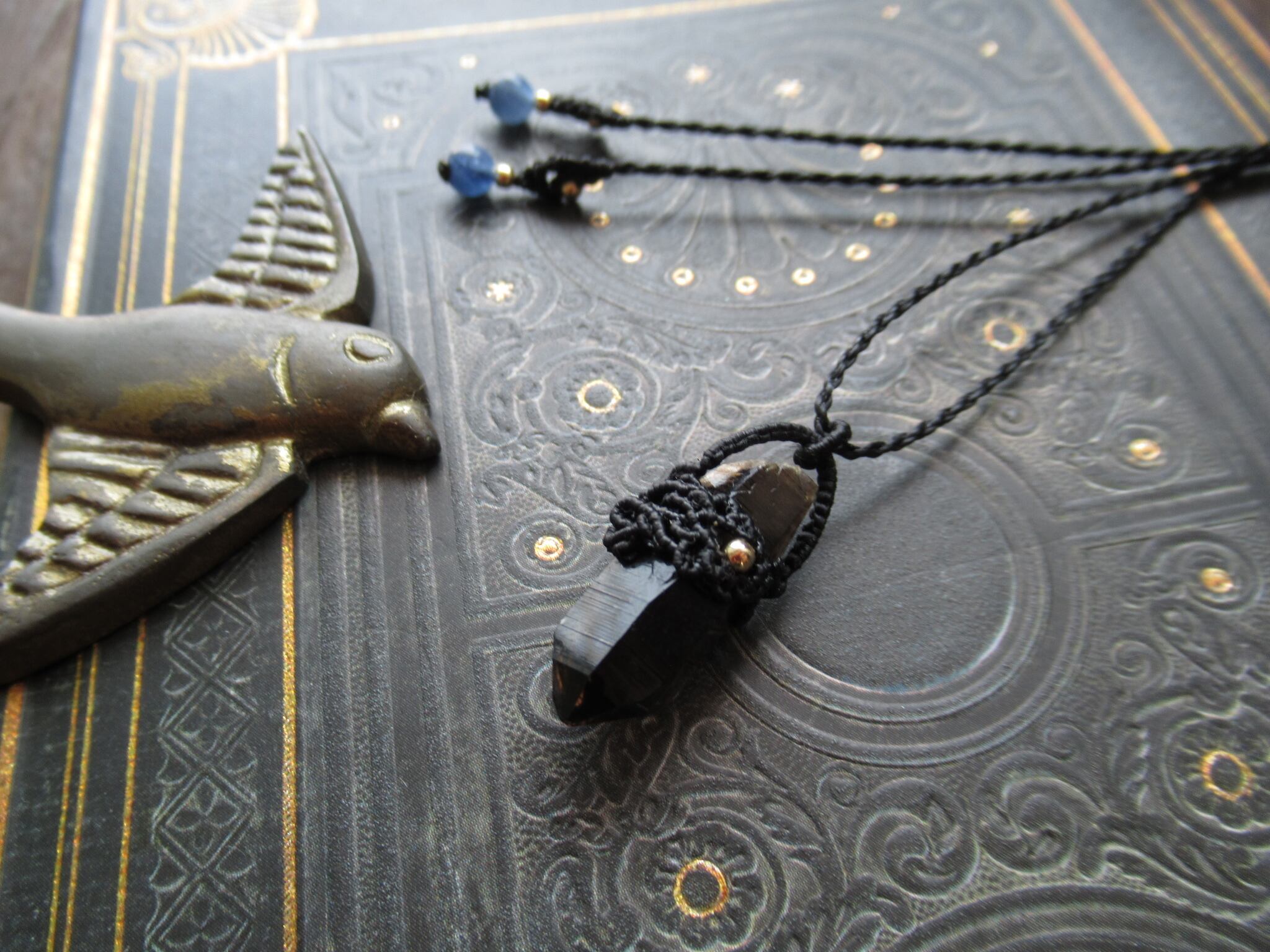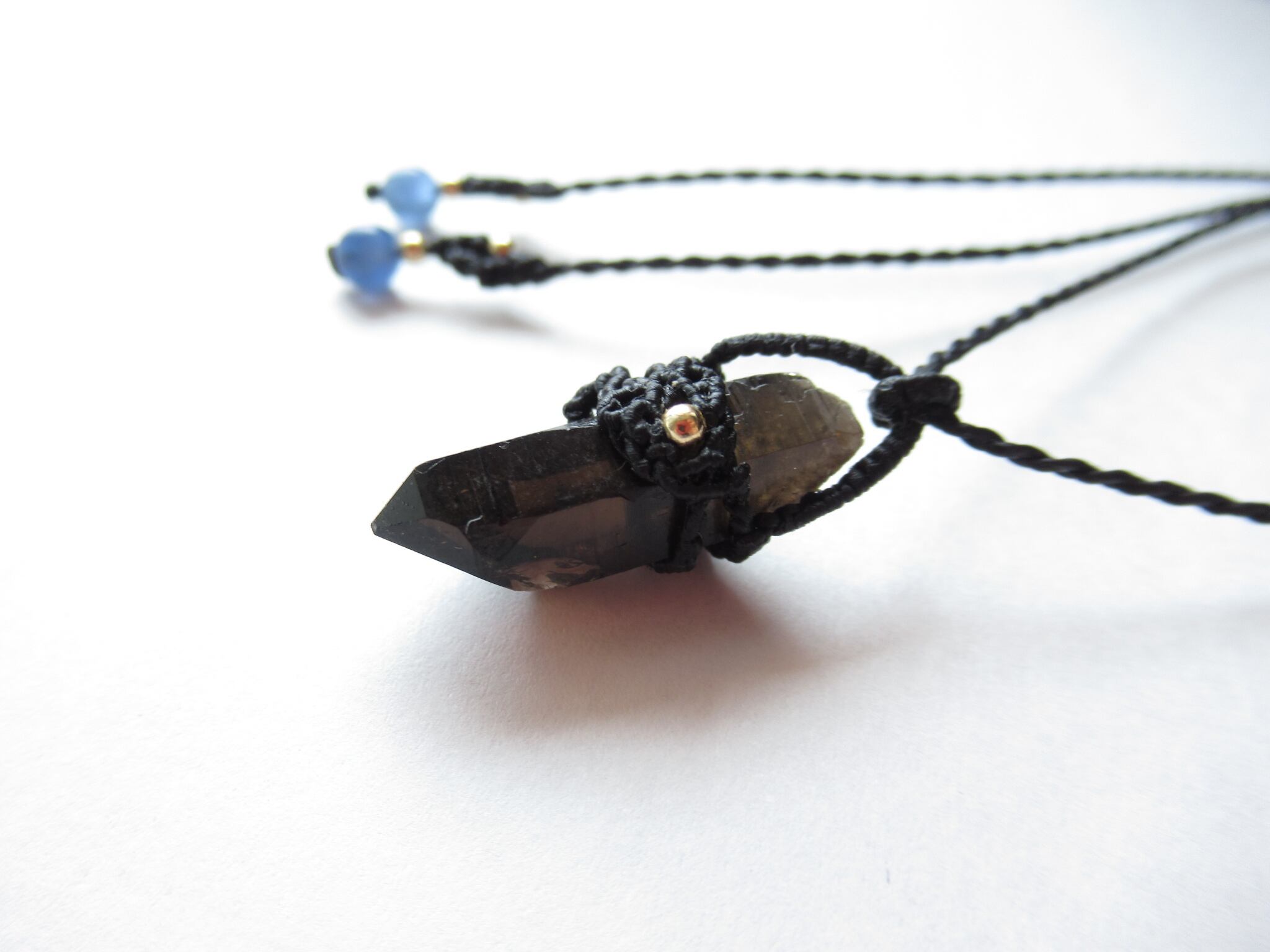 煙水晶の原石ポイントマクラメペンダント