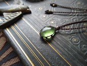 太陽の石あるいはペレの涙 / ぷっくりパキスタン産ペリドットのちいさなペンダント / 0.25㎜仕上げ