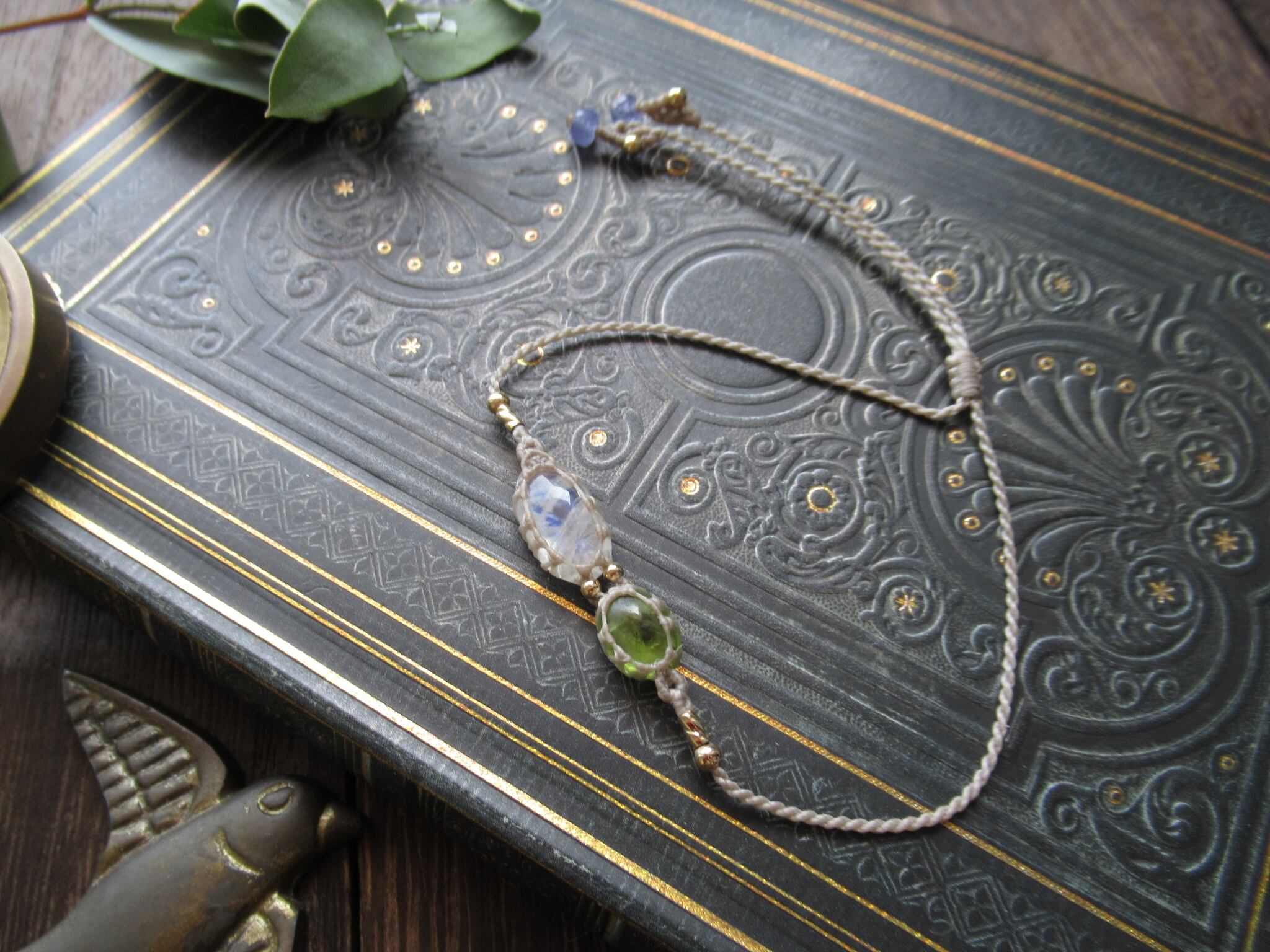 ホワイトラブラドライト×パキスタン産ペリドットのマクラメブレスレット /0.25mm仕上げ