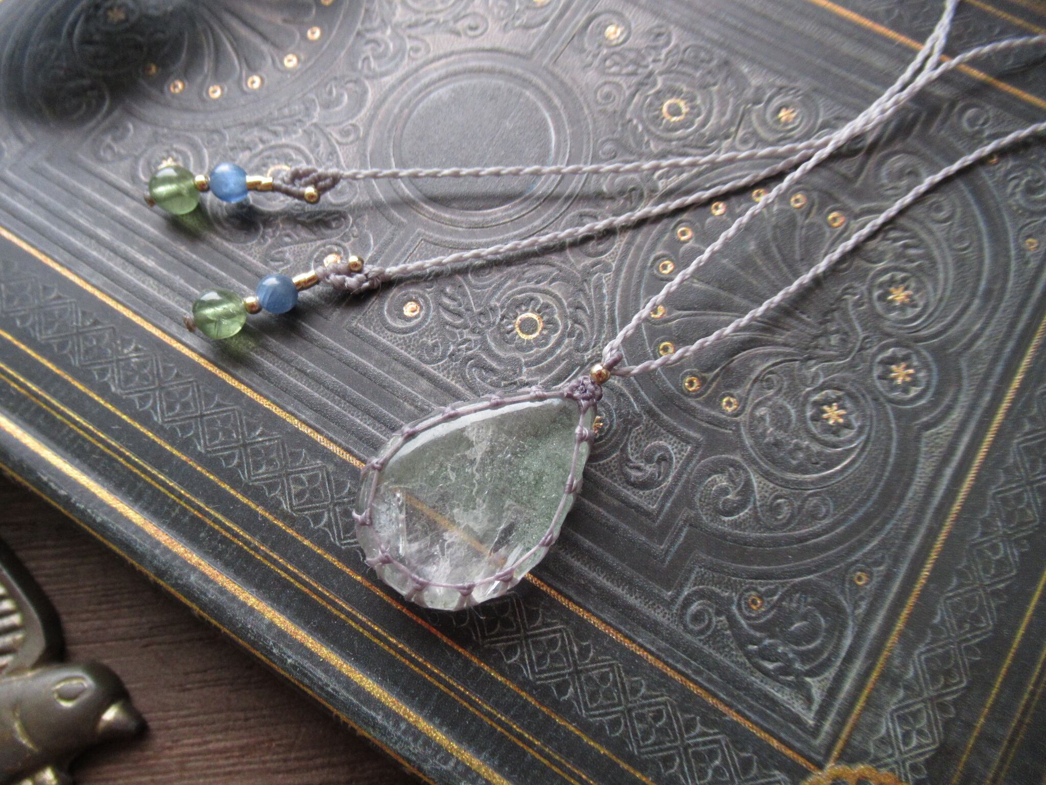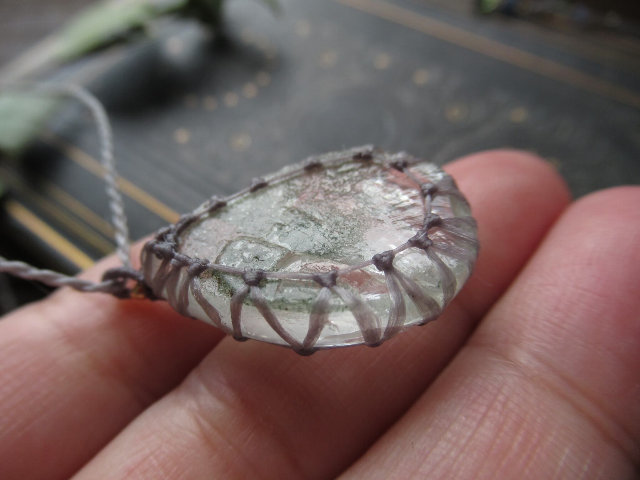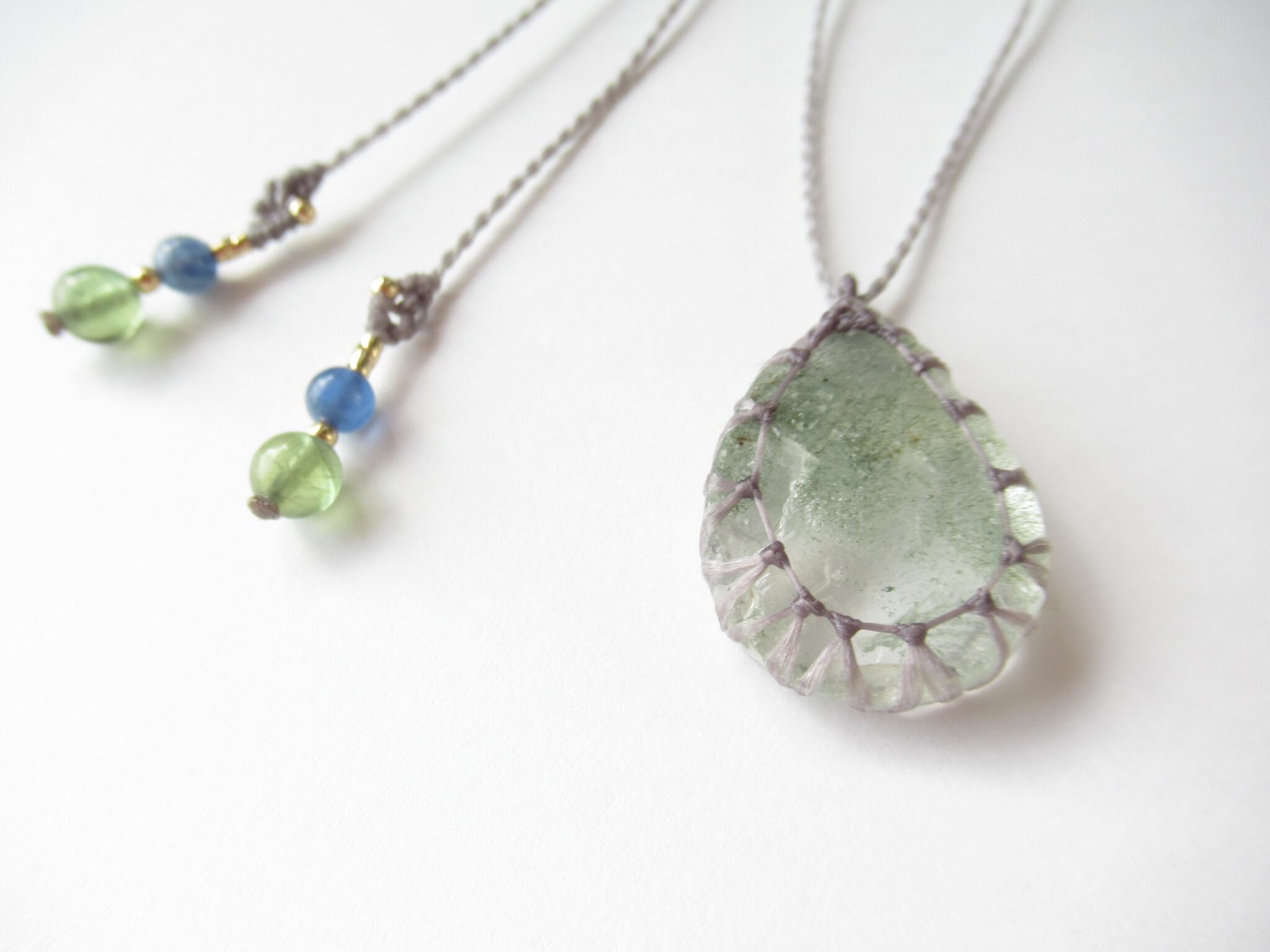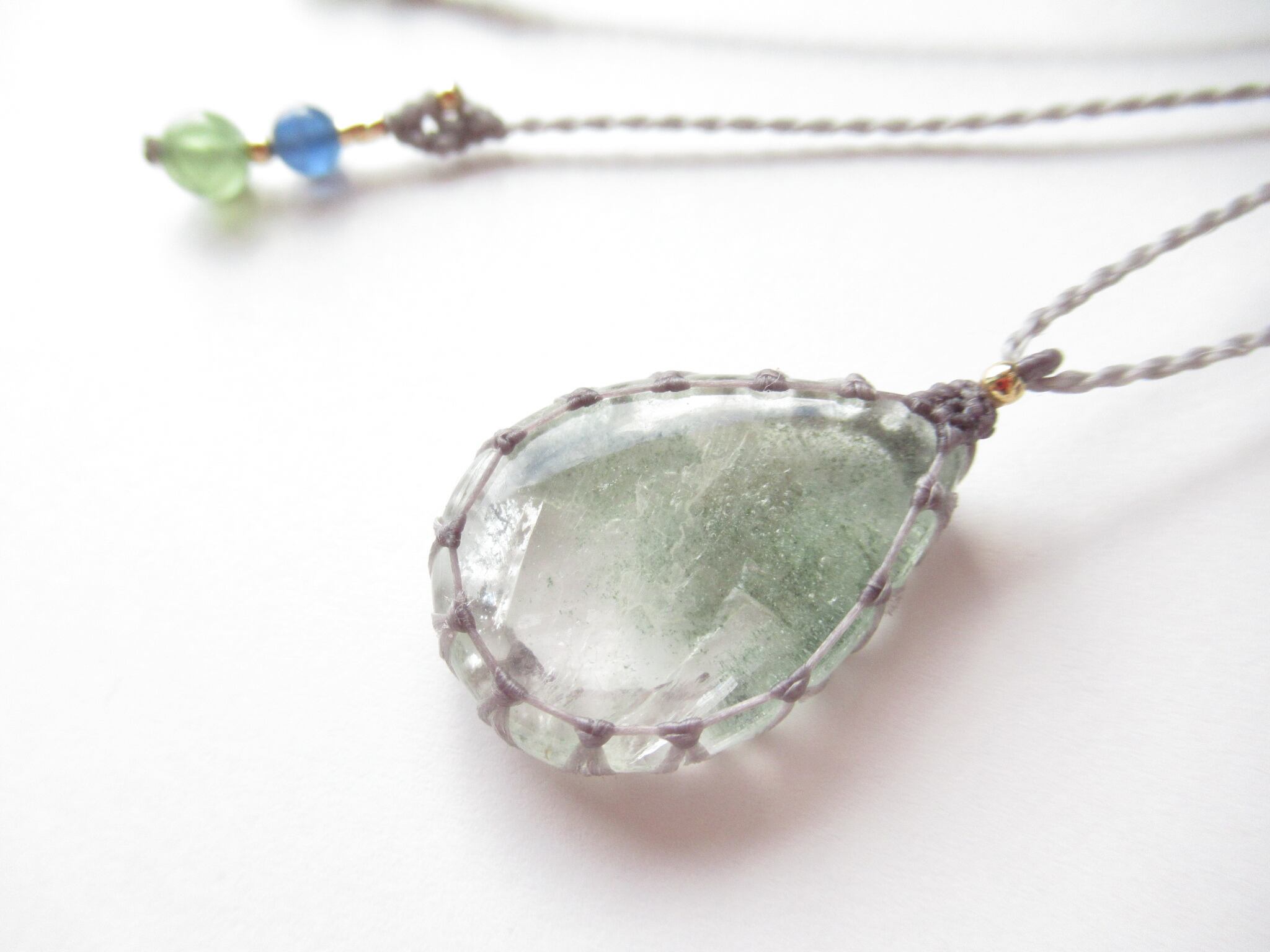 大粒ブラジル産ガーデンクォーツのマクラメペンダント / 0.25mm仕上げ / グリーン
