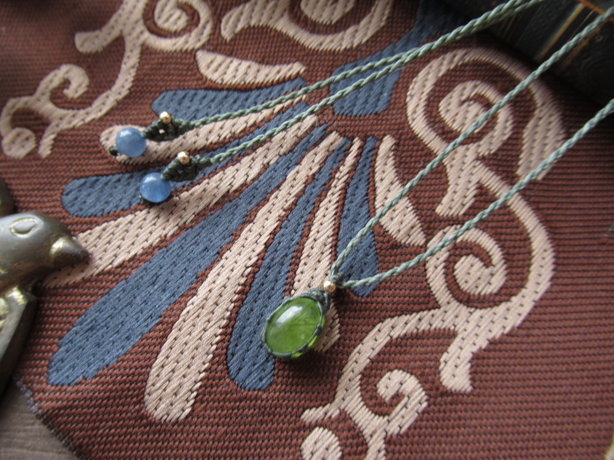編み糸は0.25mmの極細糸で全体をすっきりしっかりと編み上げています。糸が細いですが強度があり、もったりとせずすっきりとした印象で天然石の色合いや質感をよりお楽しみいただけます。